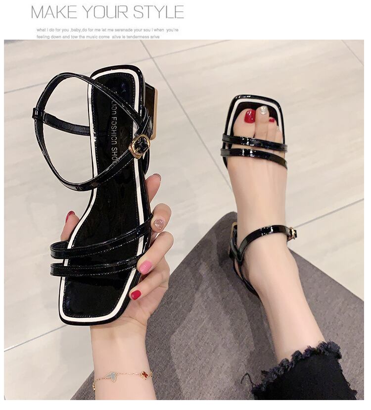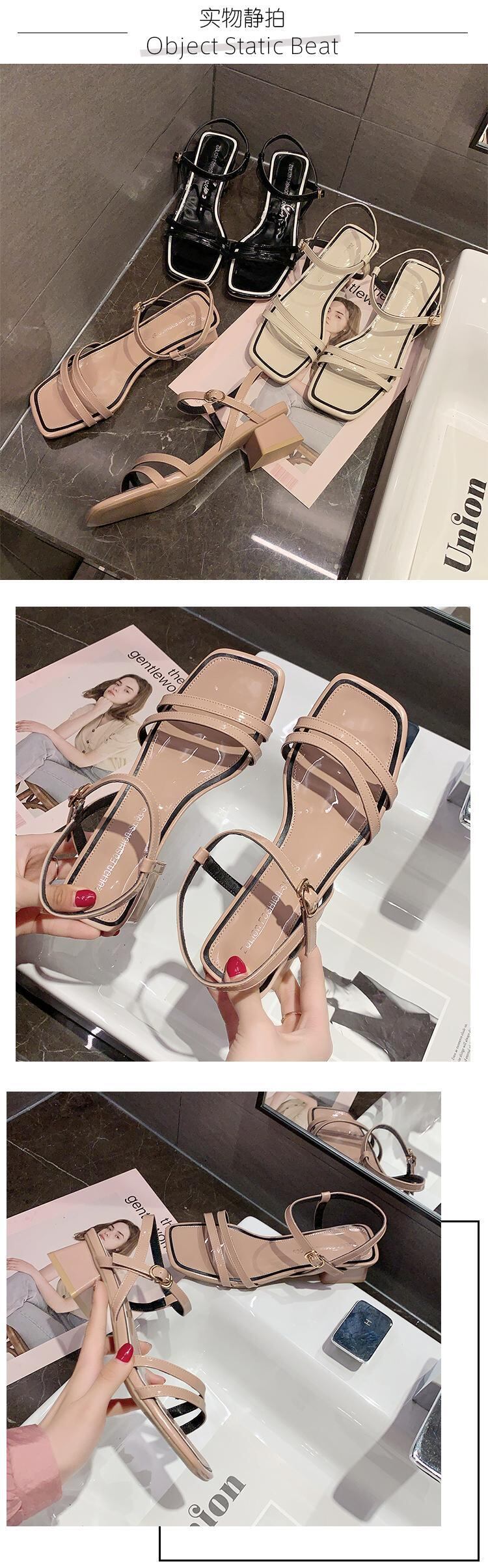 サンダル女性ins潮2020新しいファッション夏の野生の正方形ヘッドオープンつま先妖精スタイル厚いヒール 部族の婦人靴0802037