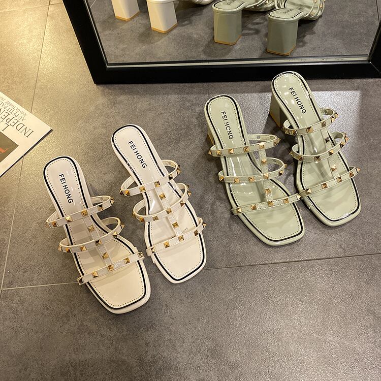厚いヒールのサンダルの女性は2020年夏の新しいファッションスクエアヘッドハイヒールの妖精スタイルのTストラップサンダルを着用します 部族の婦人靴2238991