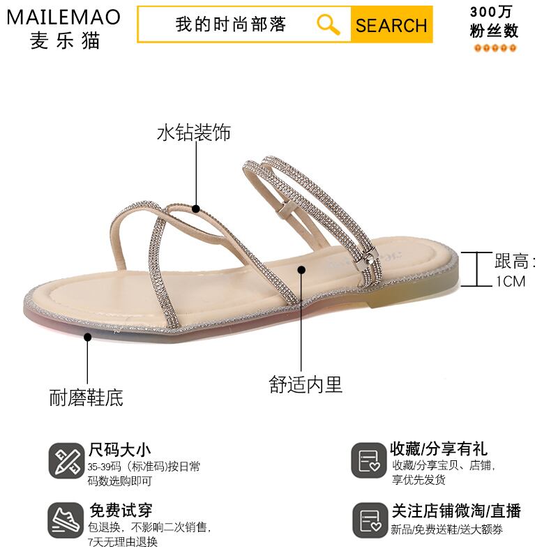 サンダル女性2020夏の新しいinsバージョン野生のラインストーンファッションネットレッドローマフラットボトム2摩耗スリッパ 部族の婦人靴4578383