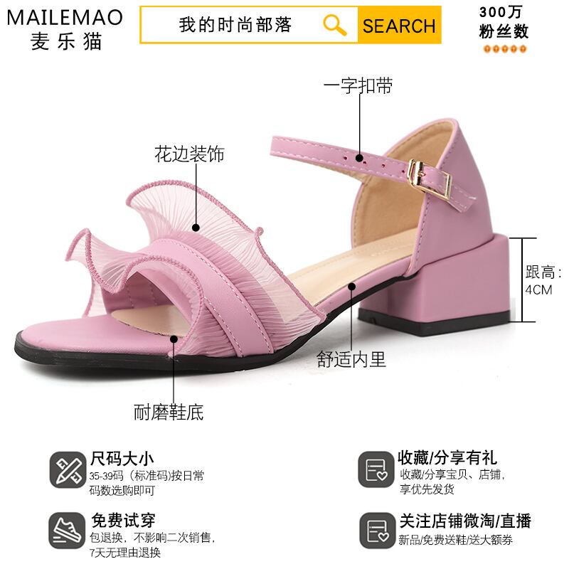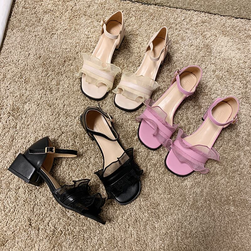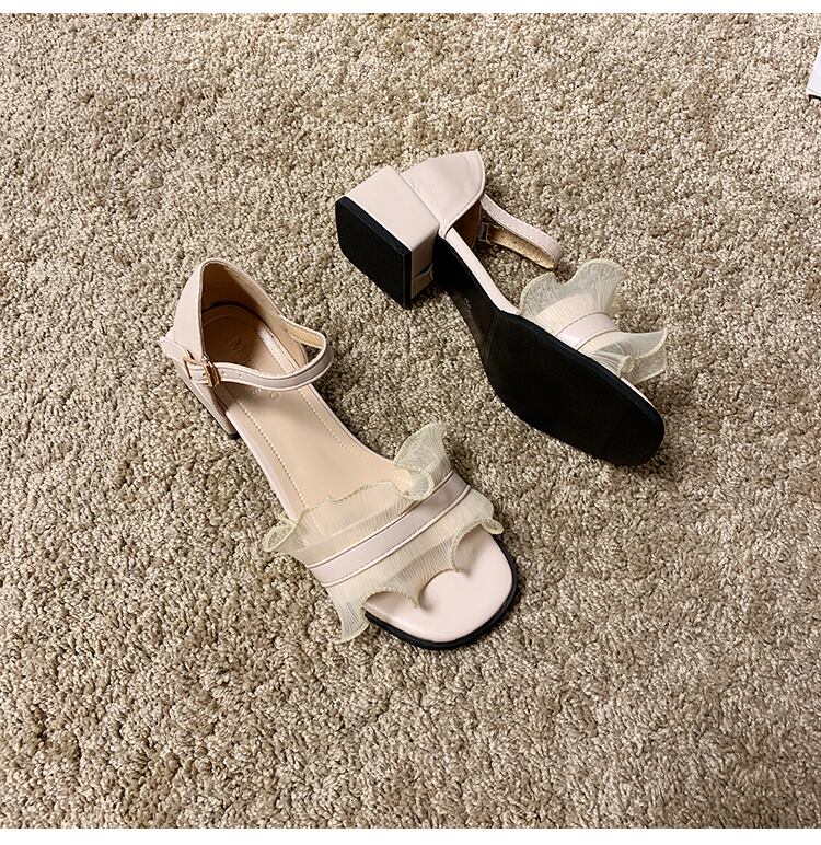 厚いヒールサンダル女性の妖精スタイル2020新しいバージョンのファッションオープンつま先insレースワードベルトハイヒールレディースシューズ 部族の婦人靴6215957
