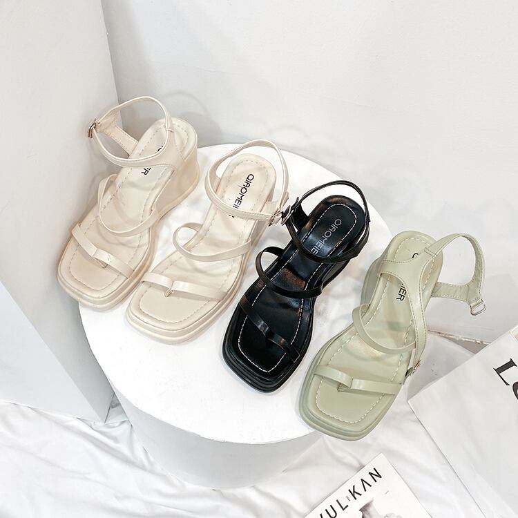 フェアリースタイルのサンダル女性2020新しい夏のファッションウェッジヒール野生の厚いソールセットつま先バックルローマの女性の靴 部族の婦人靴7073510