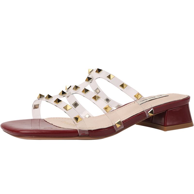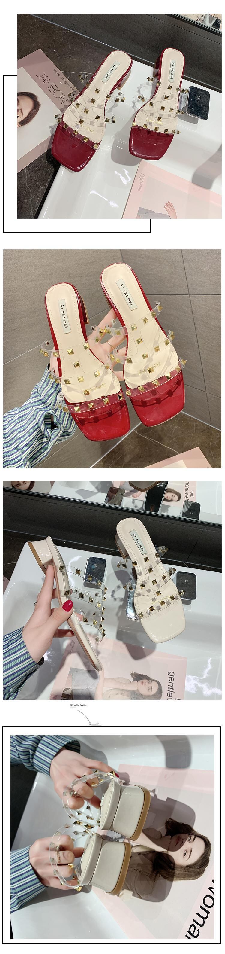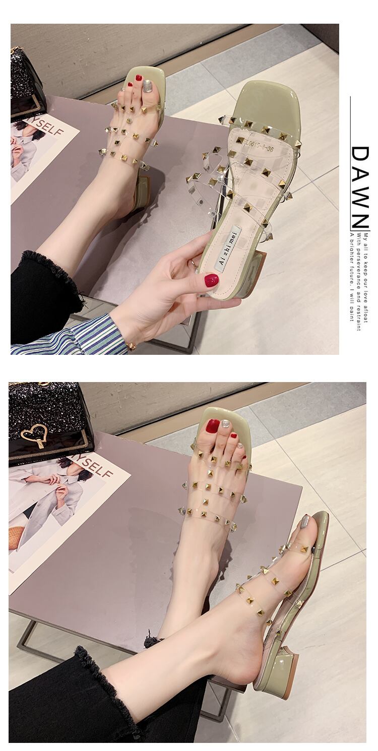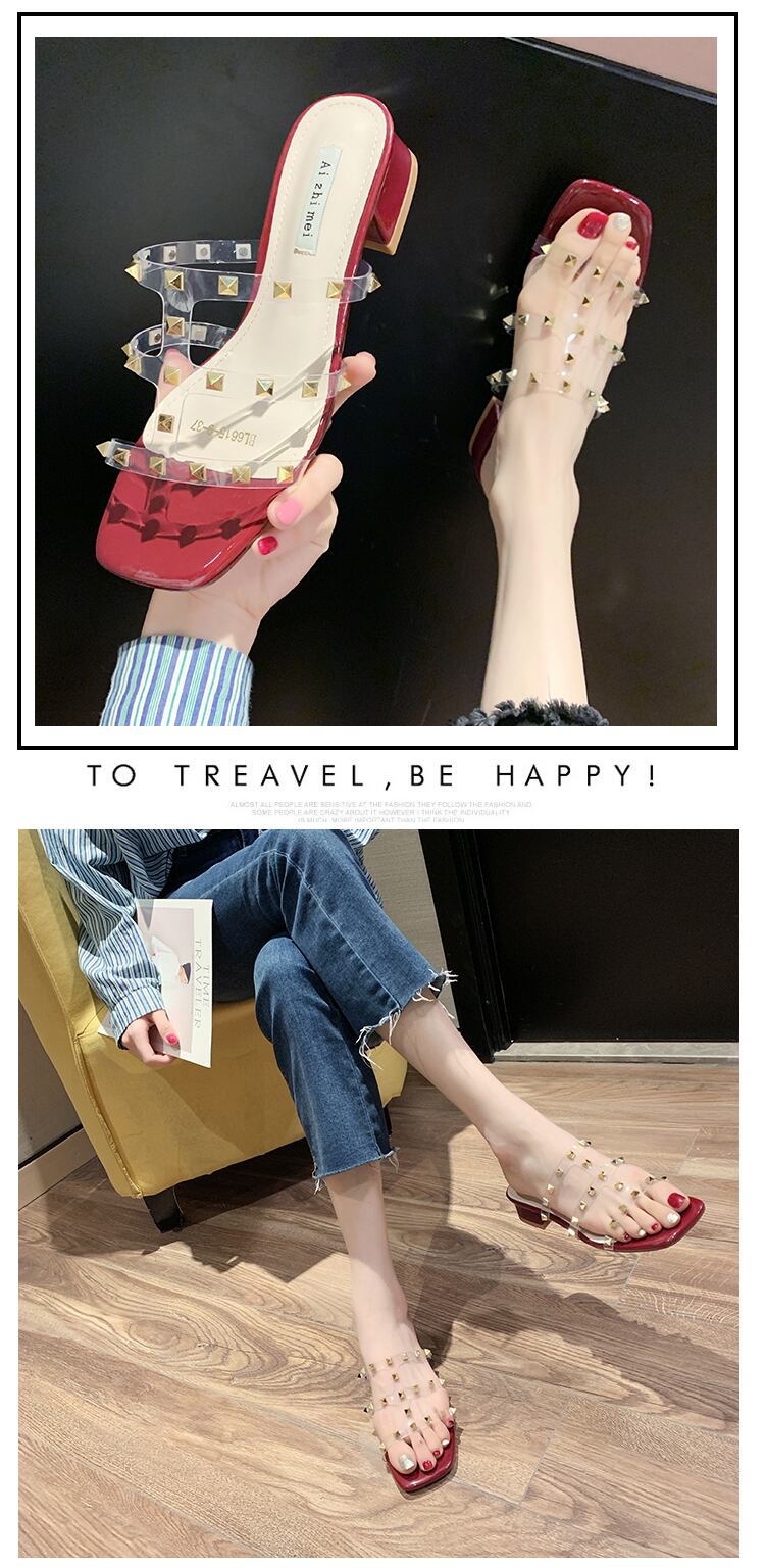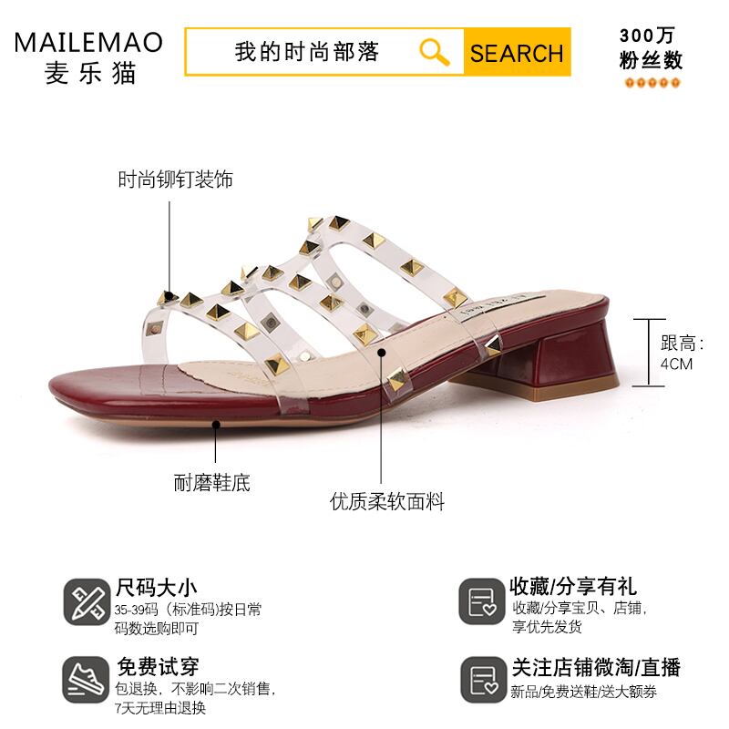 スリッパ女性insタイドウェア2020夏の新しいファッションは、ミドルヒールハイヒールサンダルとスリッパで厚く薄い薄いストリップを指摘しました 部族の婦人靴0728837