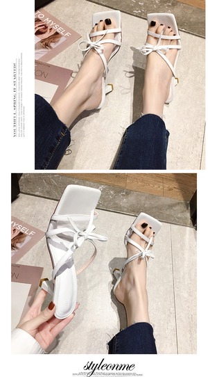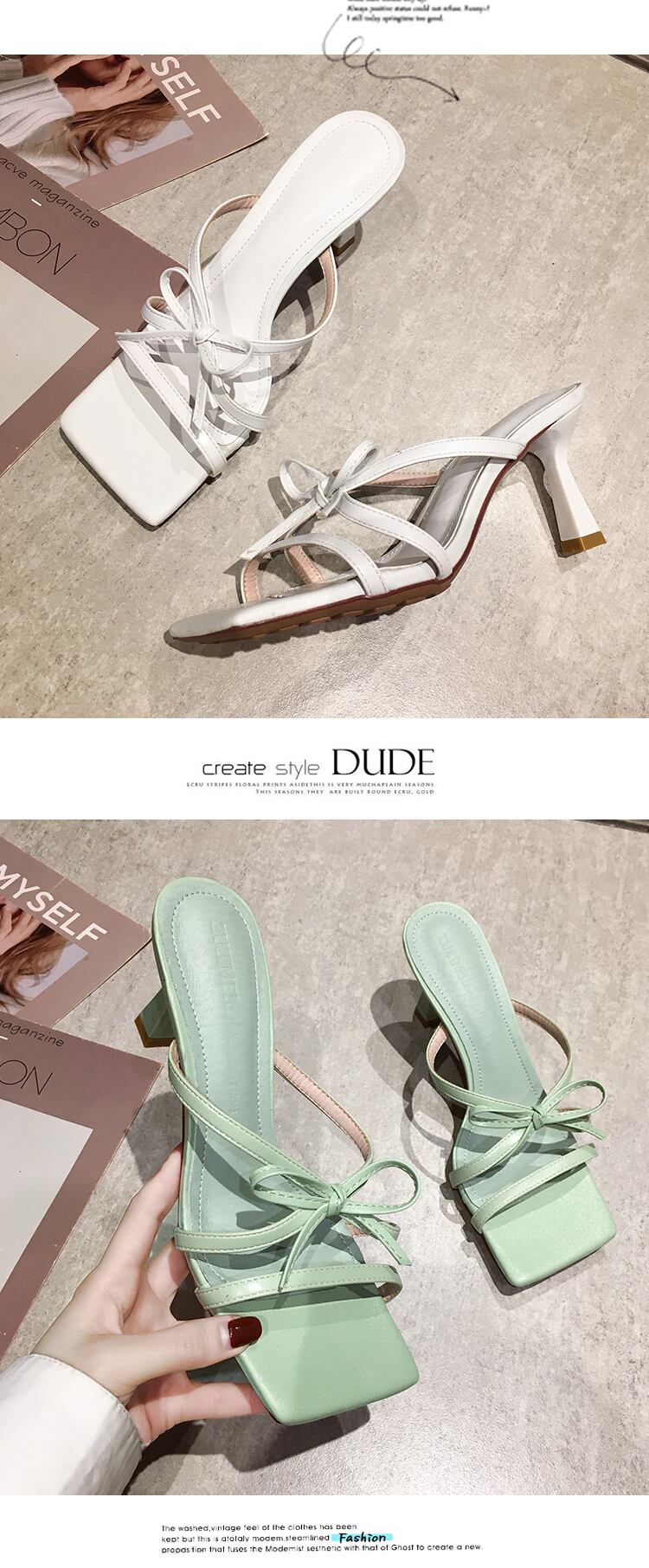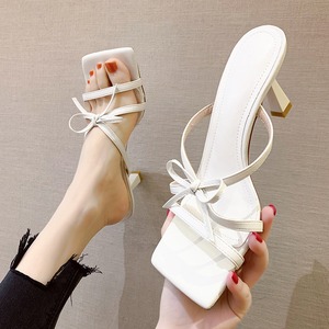 女性のサンダルとスリッパ2020年の夏の新しいinsバージョンの弓野生ネット赤いスチレットヒールの女性 部族の婦人靴9842009