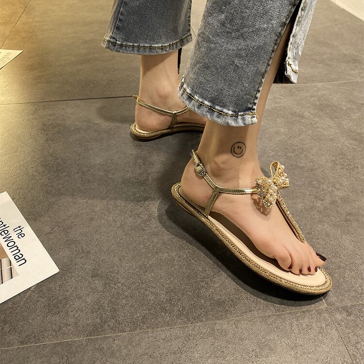 サンダル女性の妖精風2020夏の新しい女性の靴ファッションワイルドネット赤いラインストーンクリップつま先ワードバックルローマの靴 部族の婦人靴4378541