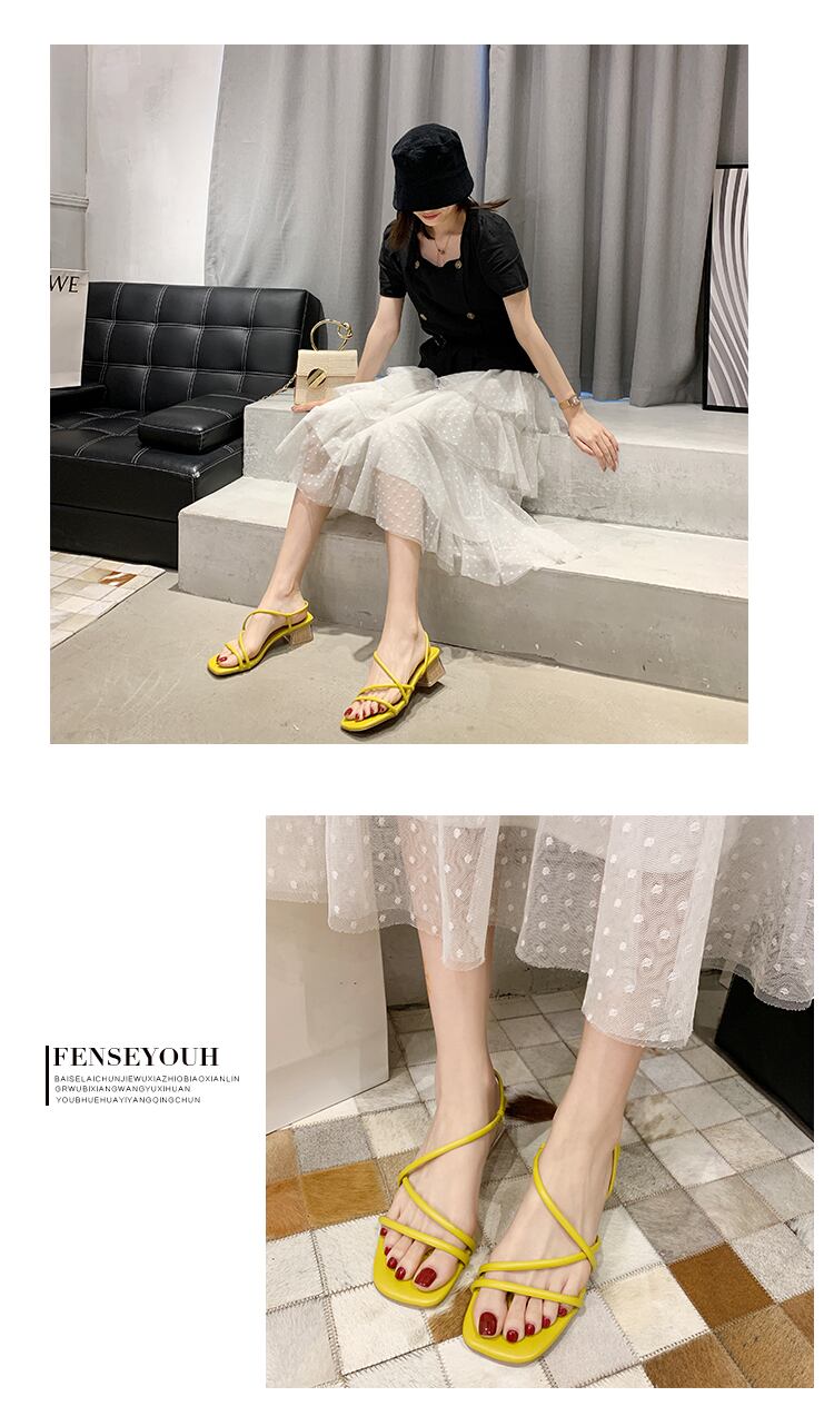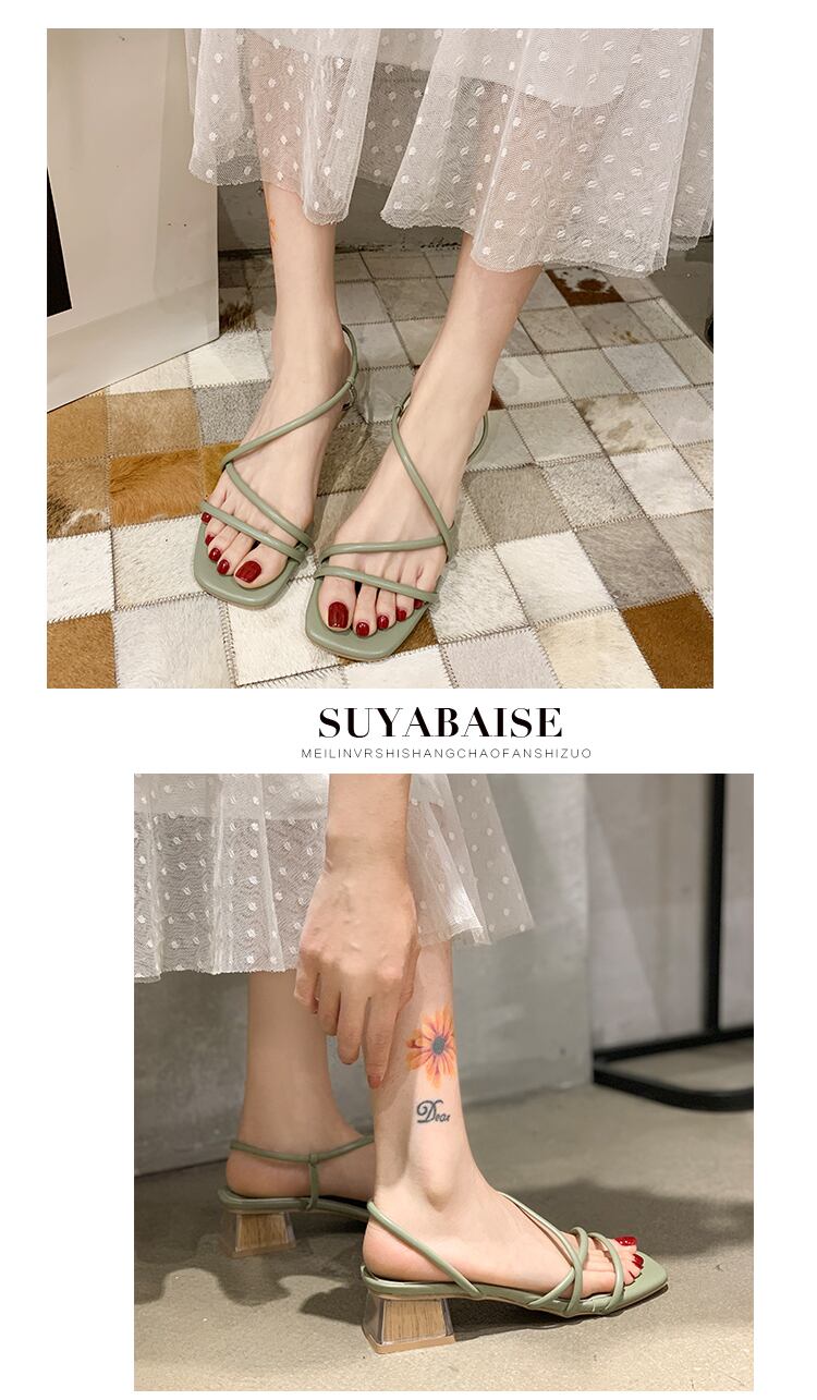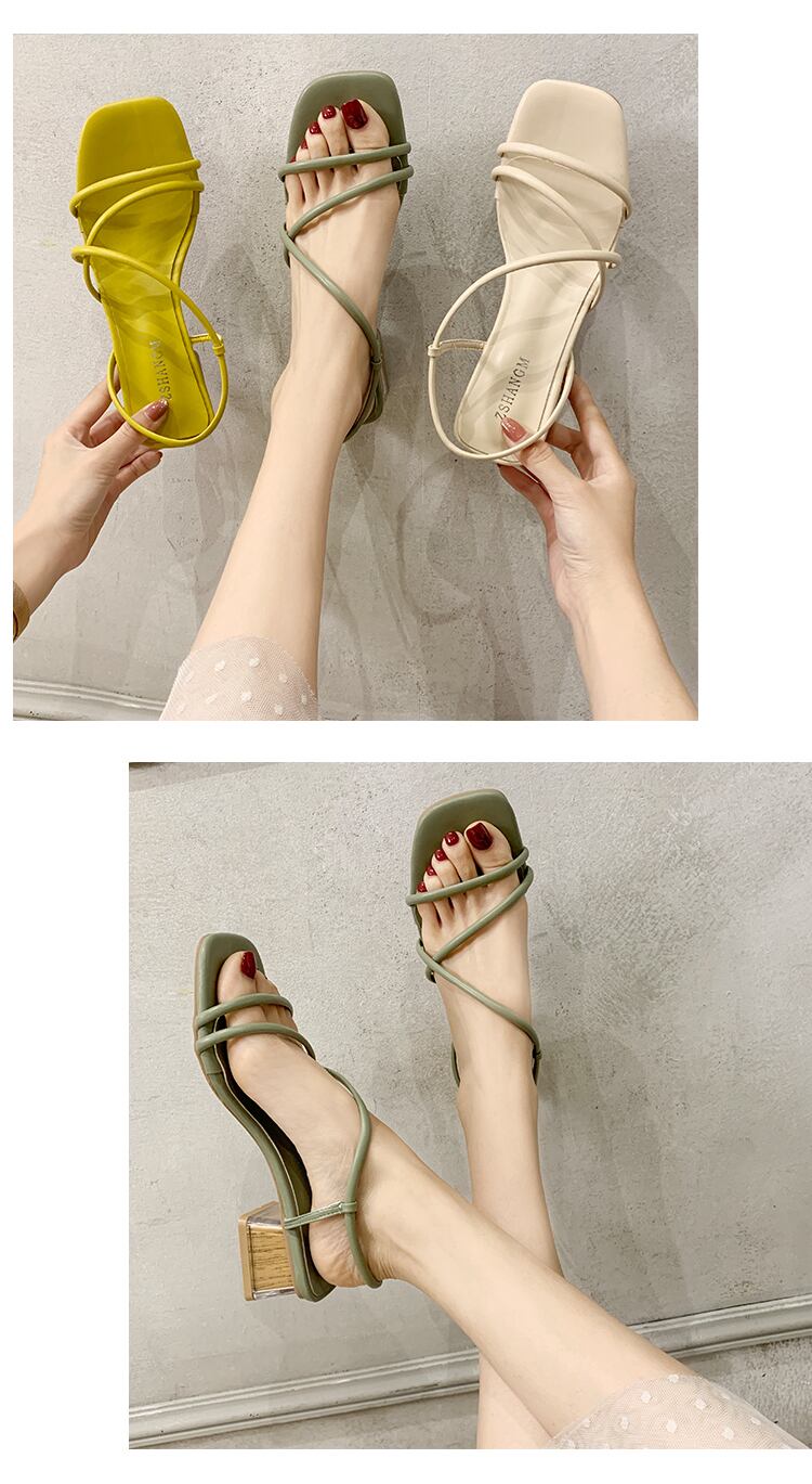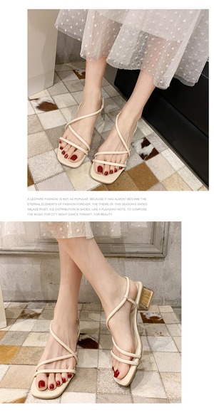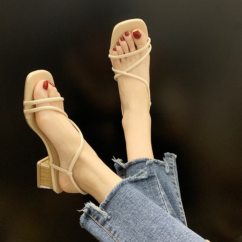 厚いヒールのサンダル女性2020新しい夏のファッションクロス薄いベルト野生の厚いヒール1ペダルミドルヒールハイヒールローマの靴 部族の婦人靴3595861