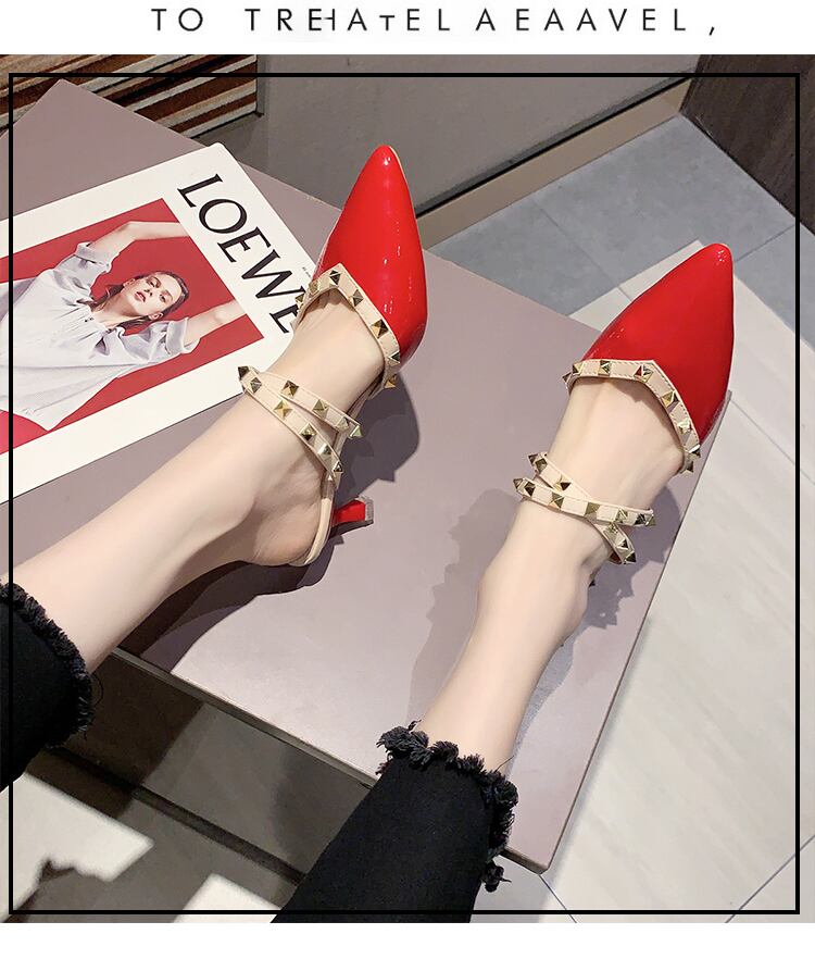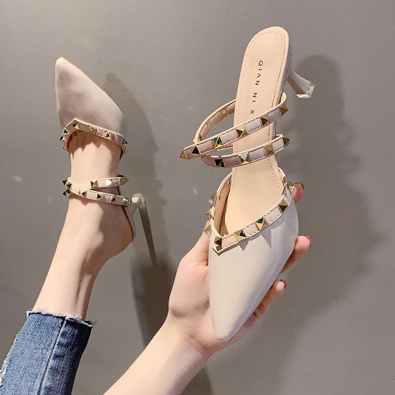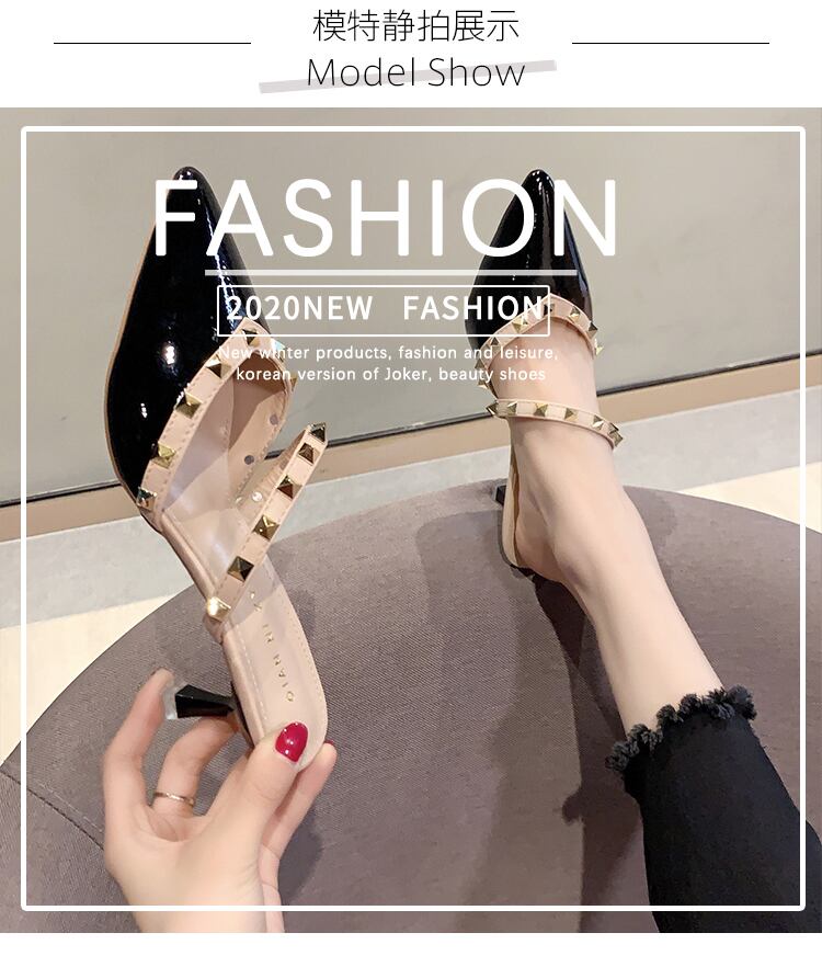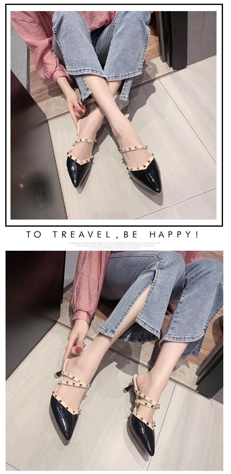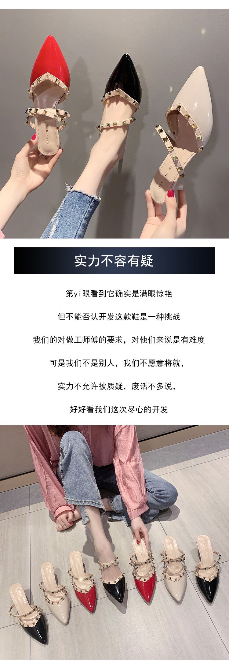 リベット包頭ハーフスリッパ女性2020夏の新しいファッションは、薄いヒールネット赤い怠惰なミュール靴の潮を着用するように指摘しました 部族の婦人靴1235750