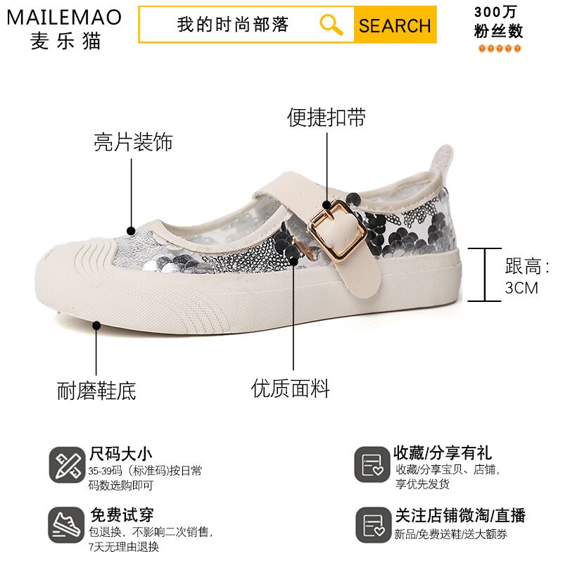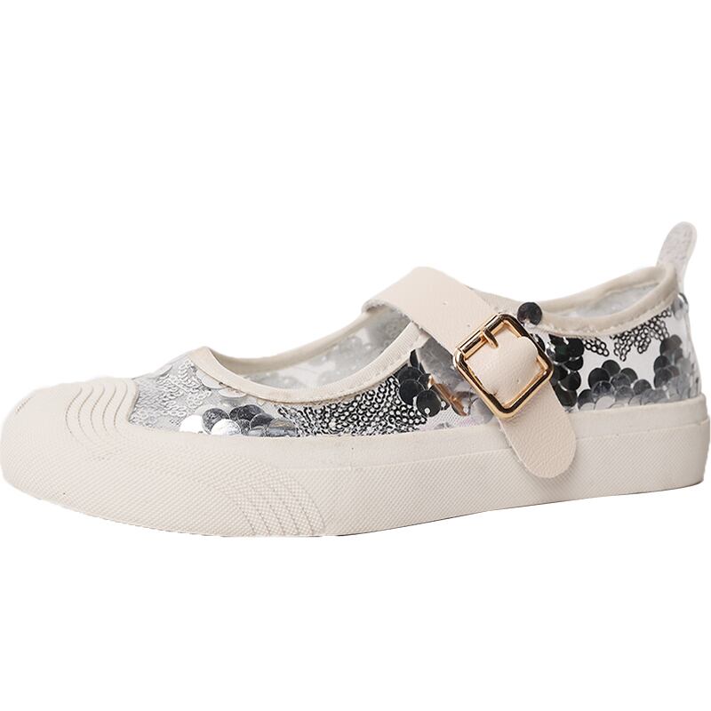 リトルホワイトシューズ2020夏の新しいメアリージェーンカジュアルシューズ女性メッシュ通気性スパンコールワードバックル妖精シングルシューズ 部族の婦人靴8967613