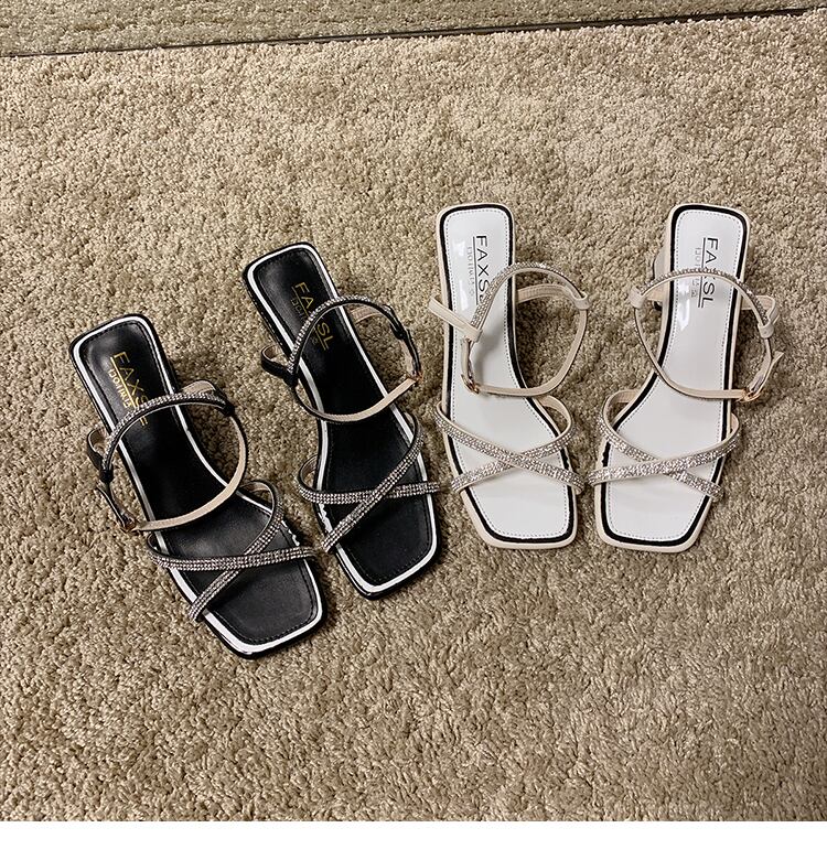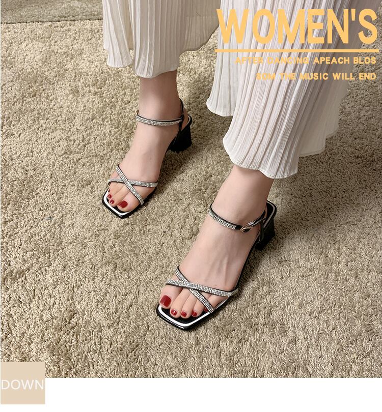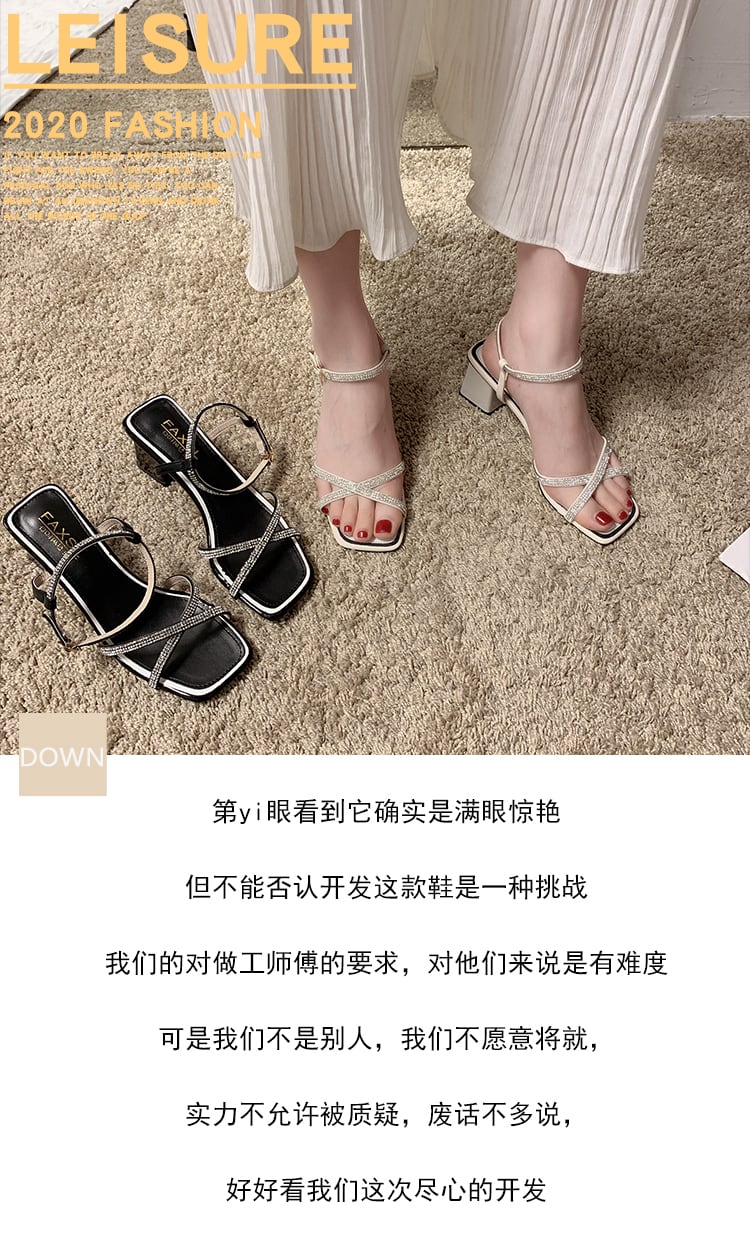 セクシーなハイヒールの女性とラインストーンファッションネット赤いオープントゥの厚いヒールサンダル女性2020年夏の新バージョン 部族の婦人靴6366965