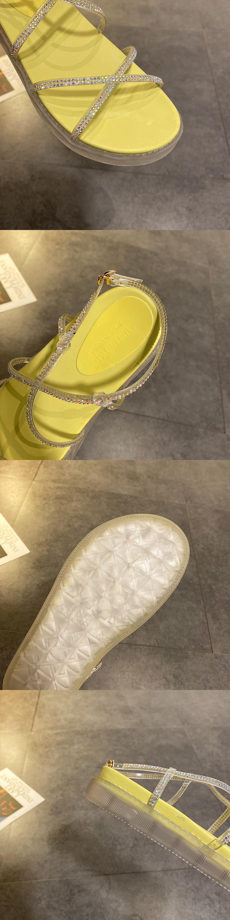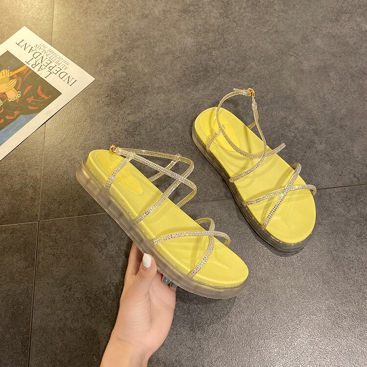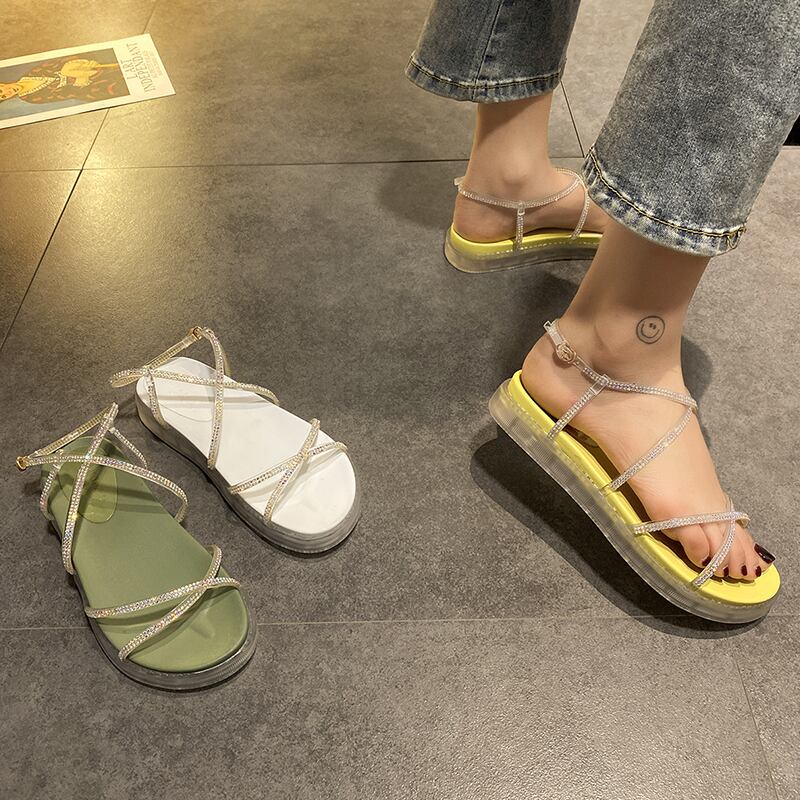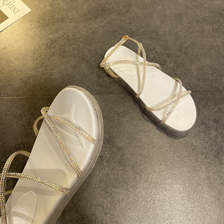 Platmサンダル女性2020夏新しいins潮の妖精スタイルワードベルトワイルドラインストーン薄いベルトローマの靴 部族の婦人靴1124722