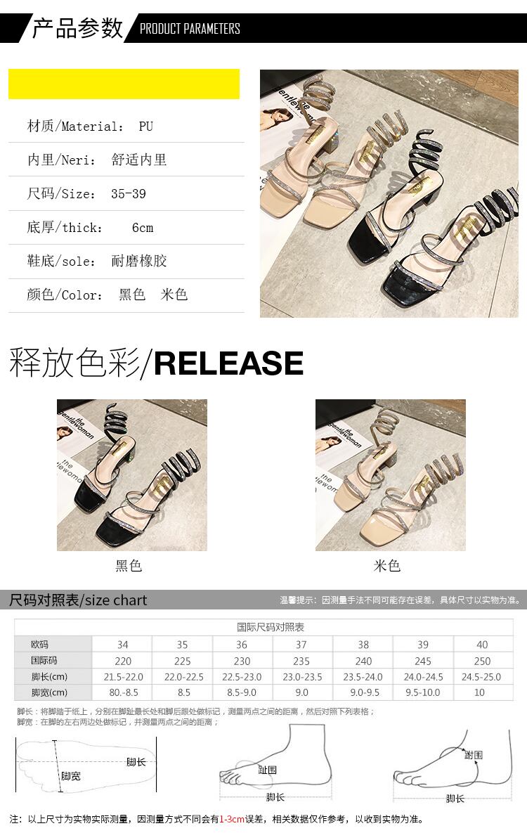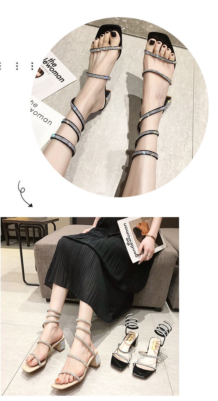 女性の妖精の風2020新しい夏の蛇行巻きミディアム厚いヒールバックルラインストーンハイヒールのサンダル 部族の婦人靴7869052