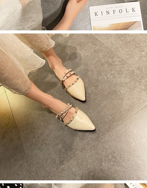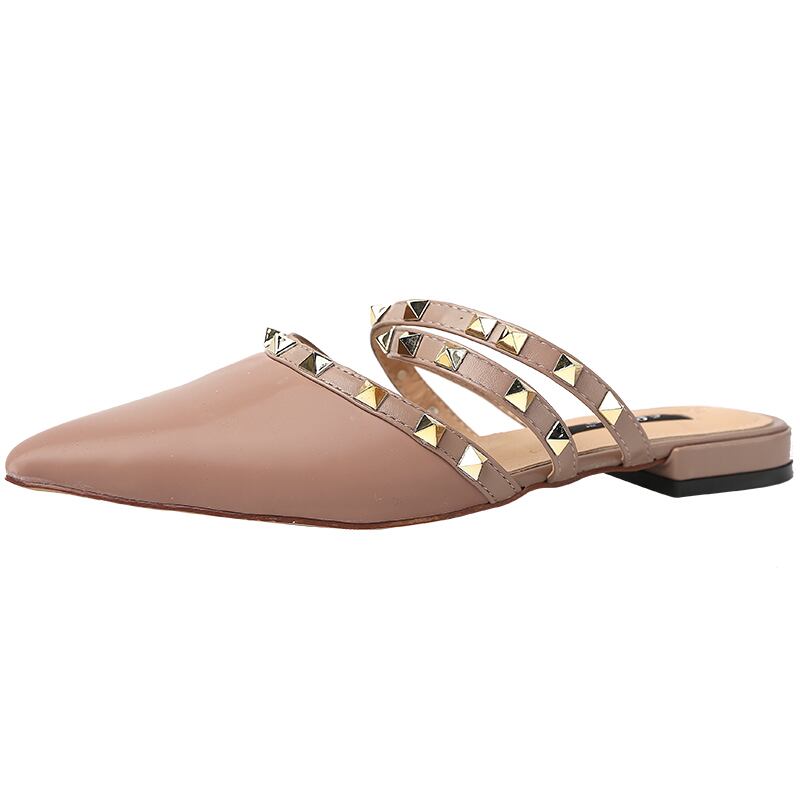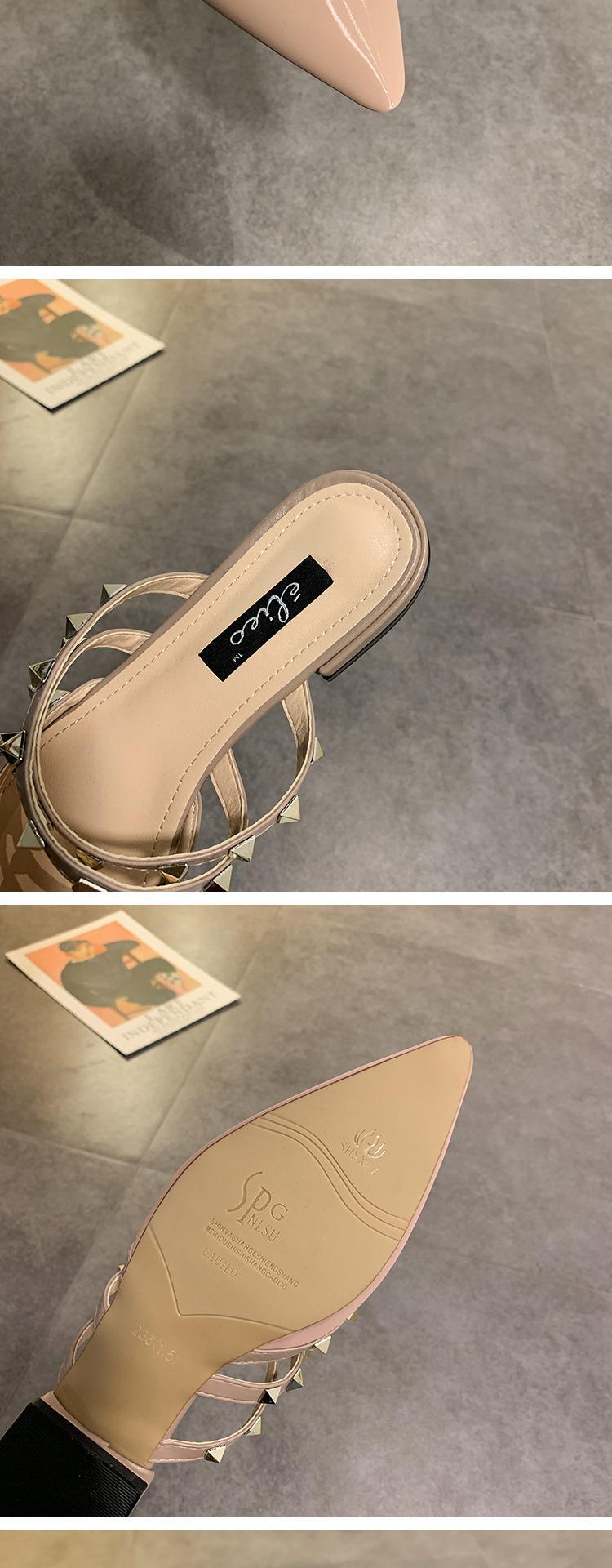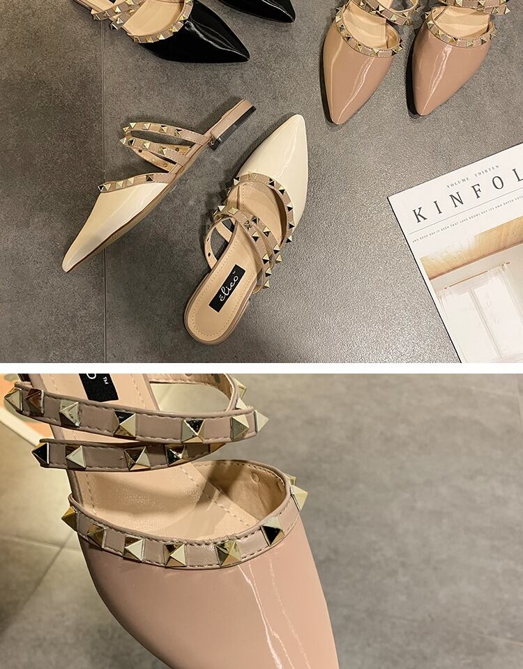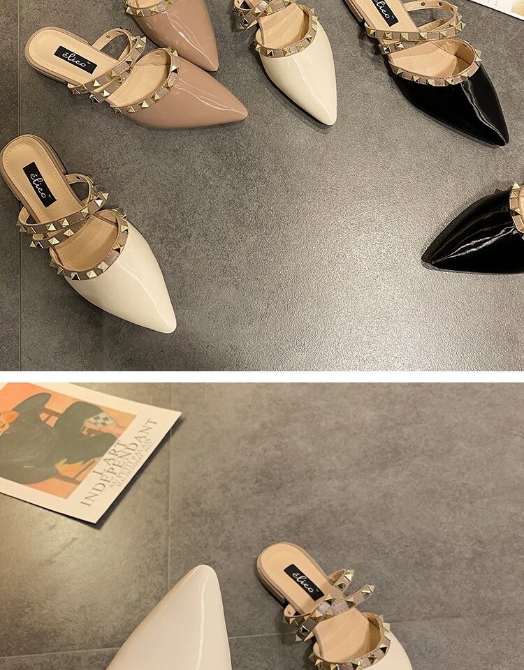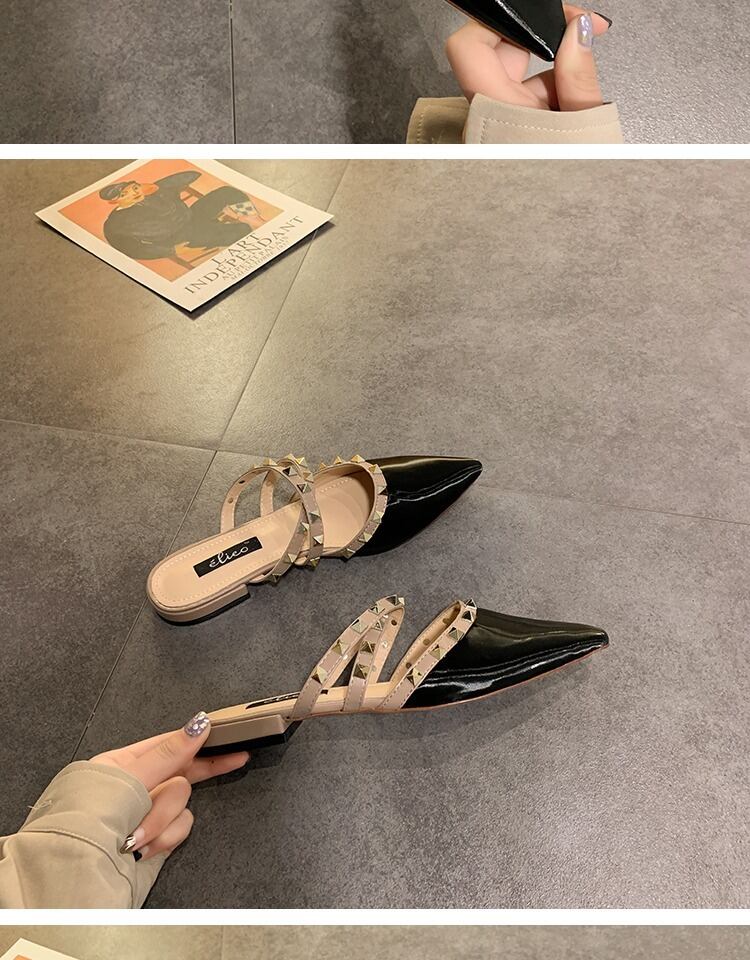 包頭スリッパ女性は2020年の新しい春の学生野生の尖ったリベットフラットボトムハーフスリッパ女性の潮を身に着けています 部族の婦人靴7068170