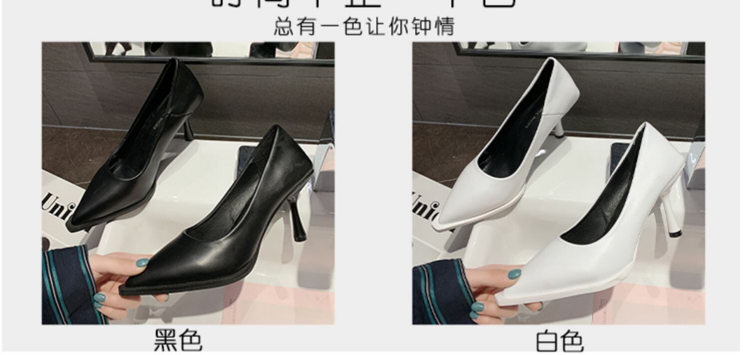 ヒールの女性2020新しい女性の靴春と秋の単一の靴細かいヒール浅い口ワンポイントとがった先のとがった野生のファッションスクープ靴潮 部族の婦人靴6084992