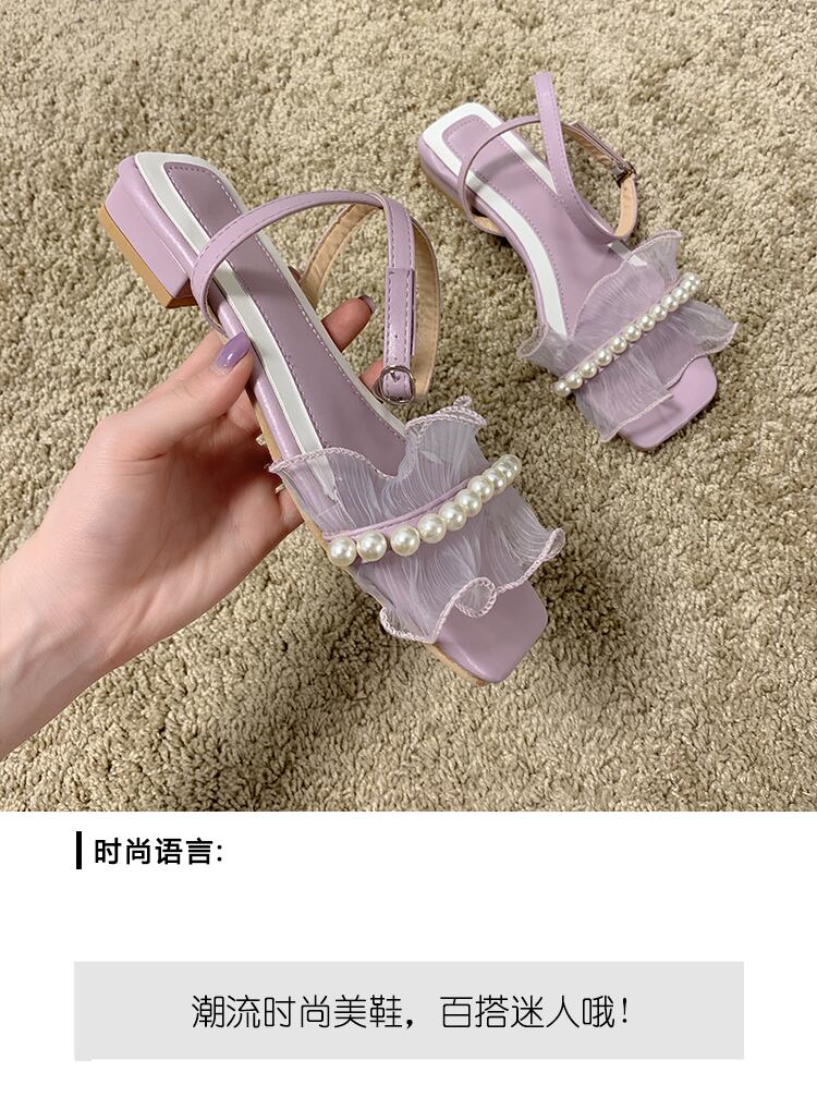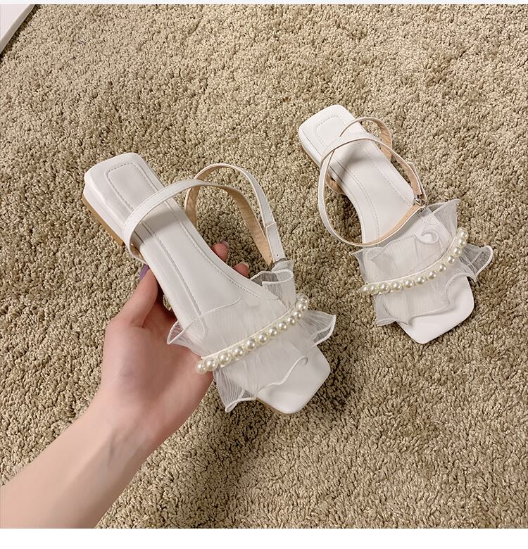 サンダルの女性の妖精風2020夏の新しいバージョンの蓮の葉の野生の遅い夜の真珠のファッションフラットボトムローマンシューズ 部族の婦人靴1493646