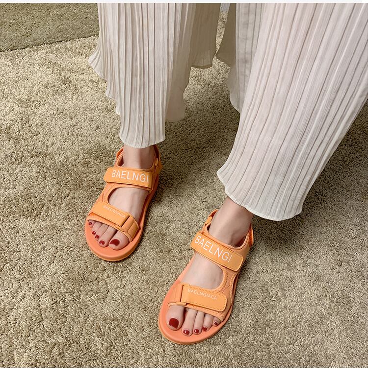 フラットサンダル女性2020年の新しい夏のワイルドネット赤イン学生学生オープントゥベルクロマフィンレディースシューズのバージョン 部族の婦人靴5351127