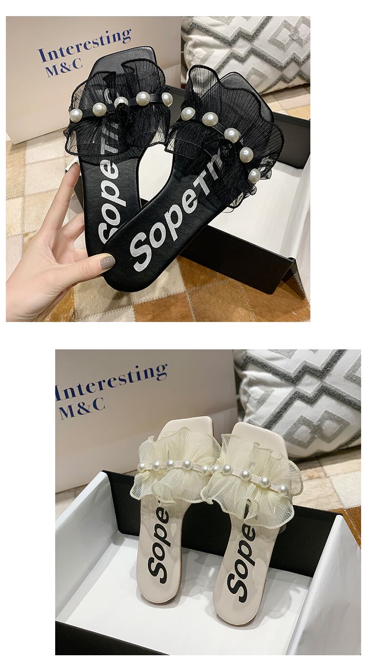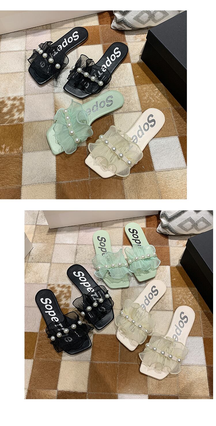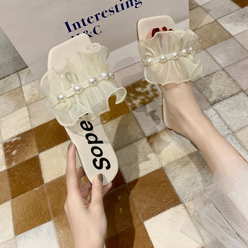 スリッパ女性は2020夏の新しい野生のネット赤インレースオープントゥパールソフトボトムフラットボトムフラットドラッグを着用 部族の婦人靴9330281
