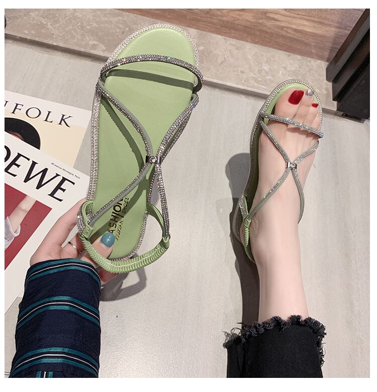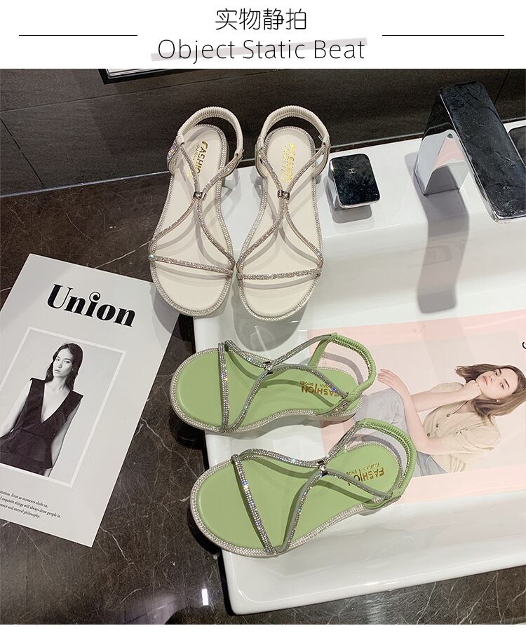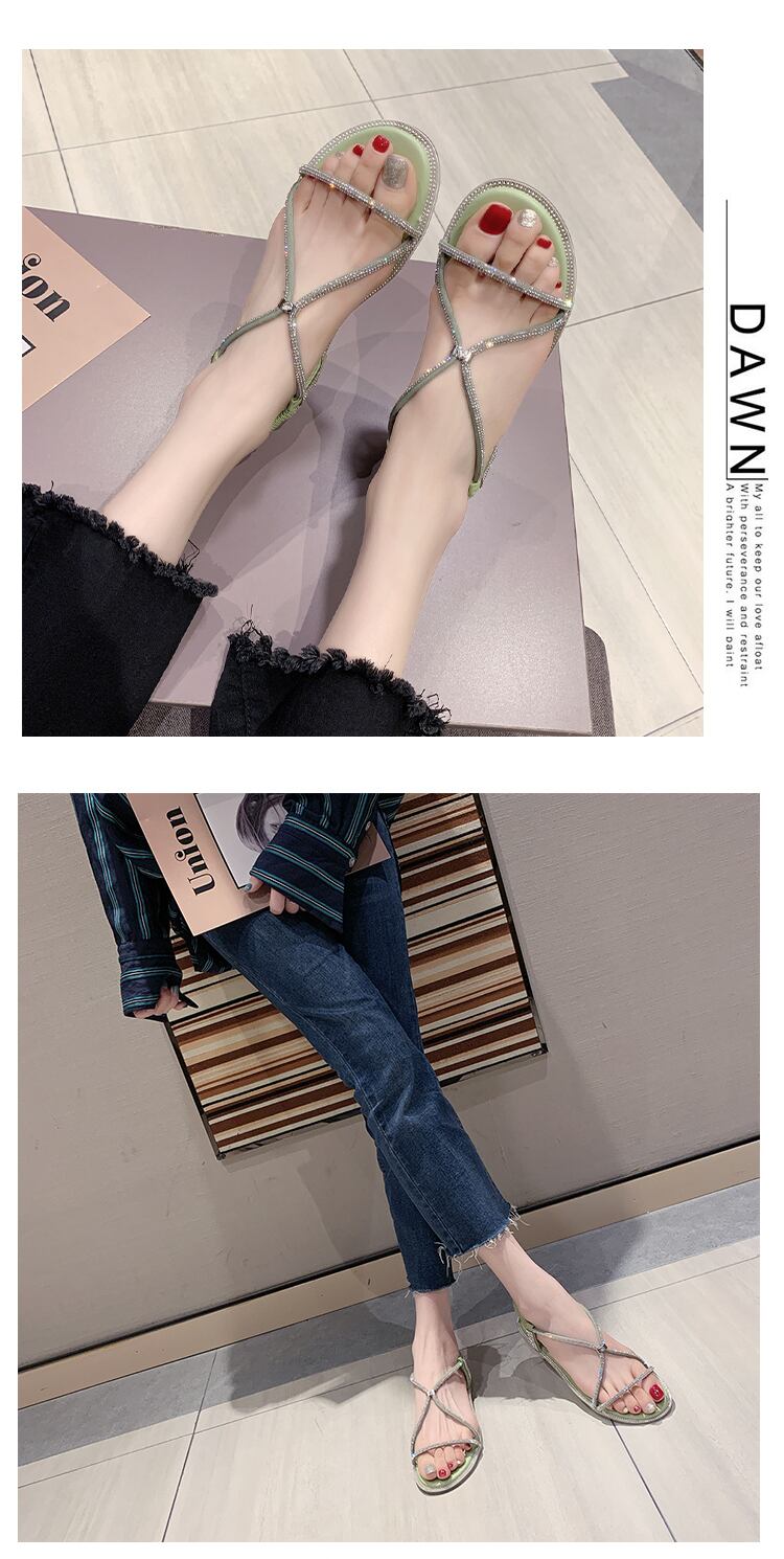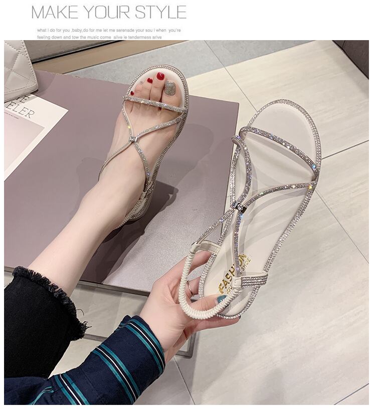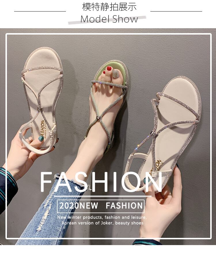 ネット赤いサンダル女性のフラットシューズ2020夏の新しいバージョンのシックな野生のカジュアルなラインストーンの妖精スタイルのローマの靴 部族の婦人靴8644146