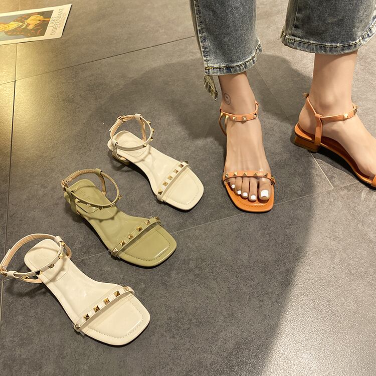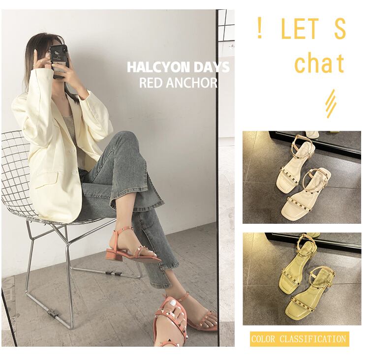 サンダル女性2020夏の新しいinsタイドバージョンのネット赤の正方形のヘッドオープントゥ妖精スタイルのワードバックルのローマの靴 部族の婦人靴1703551