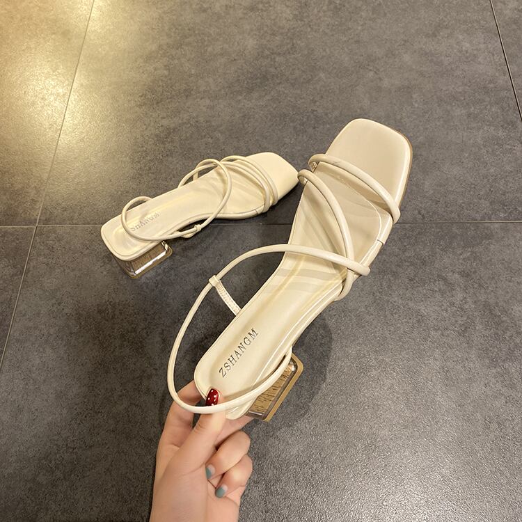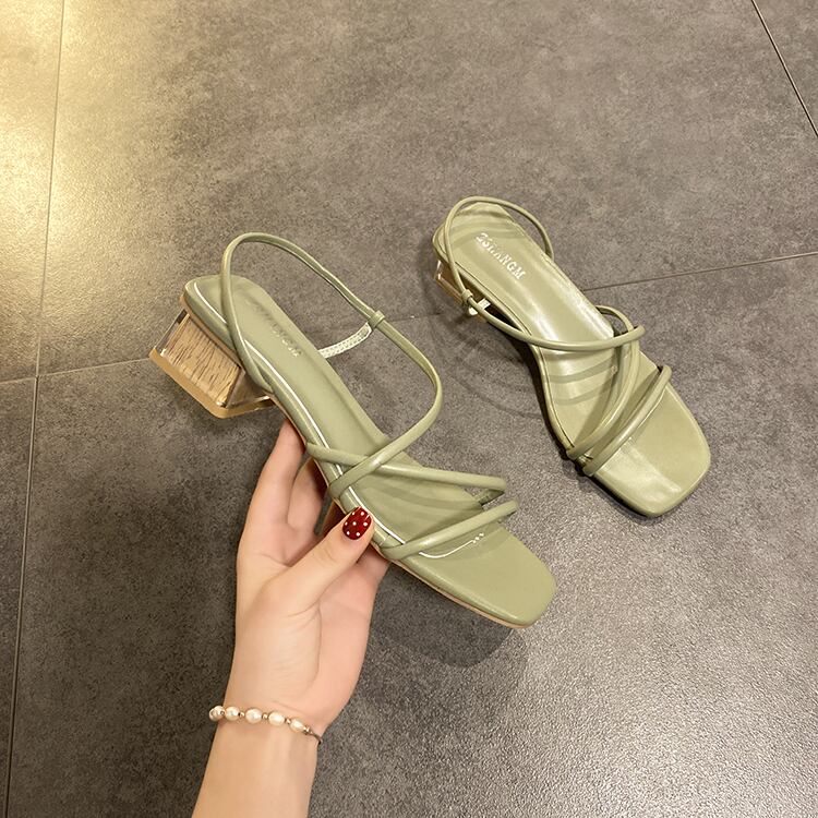 ローマのサンダル女性2020新しい夏のファッション妖精スタイルスクエアヘッド厚いかかとハイヒール女性の潮 部族の婦人靴7224657