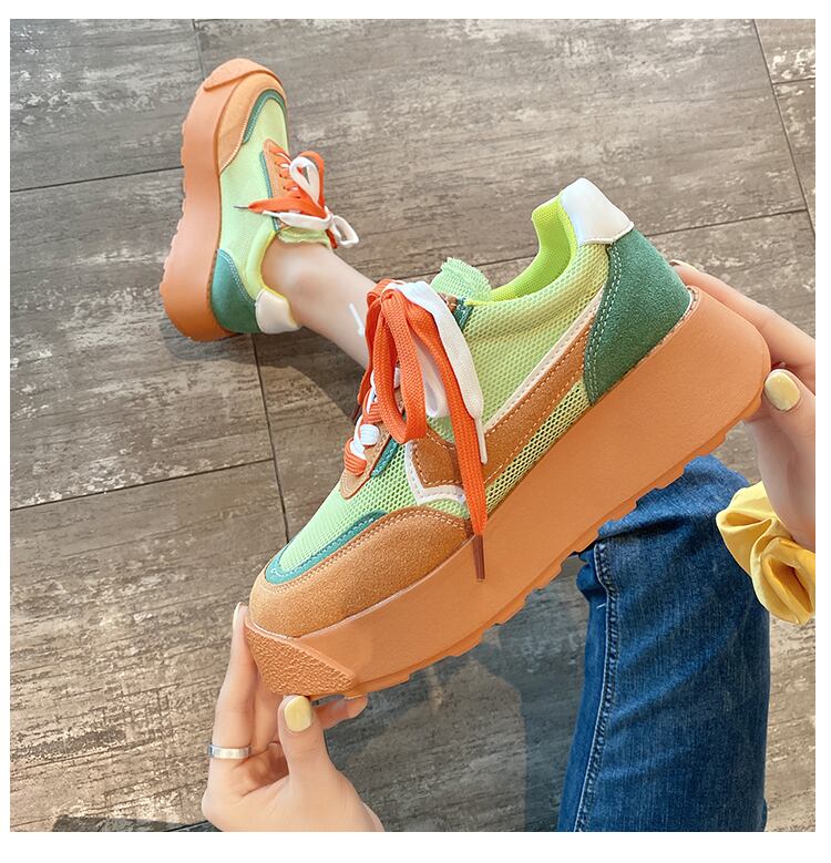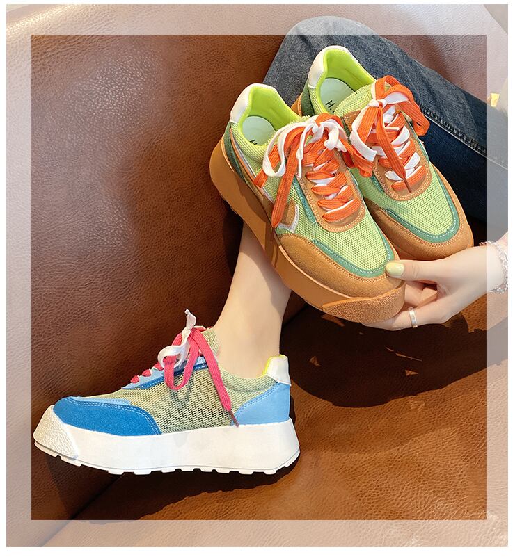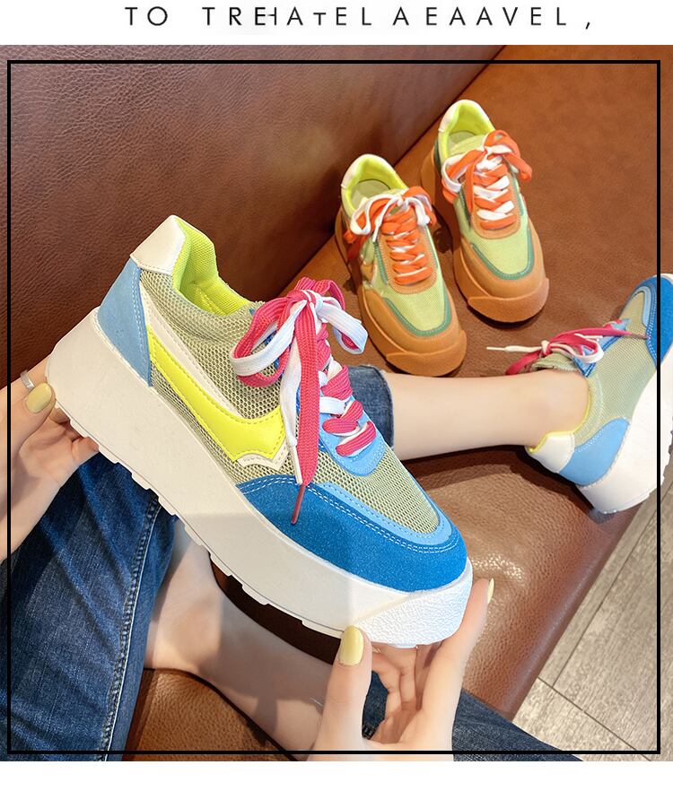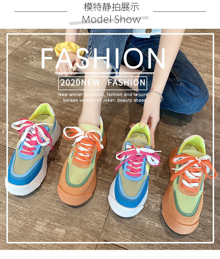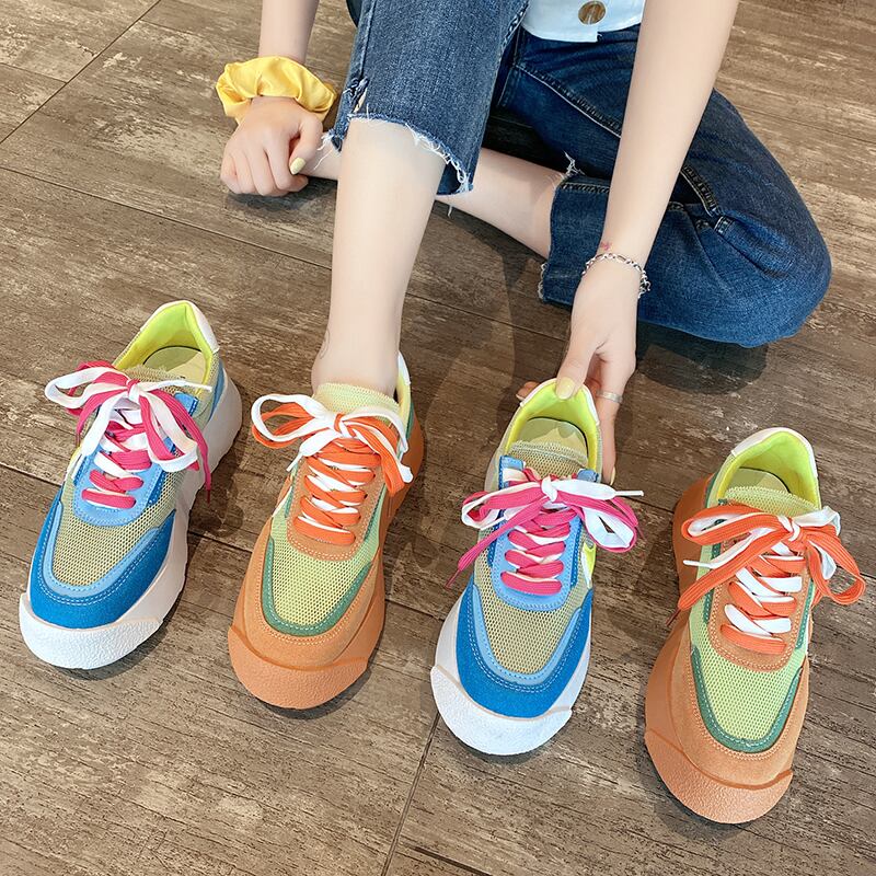スポーツシューズ女性ins2020新しいメッシュ通気性学生レースアップ厚底スポーツカジュアル古い靴女性野生 部族の婦人靴1235214