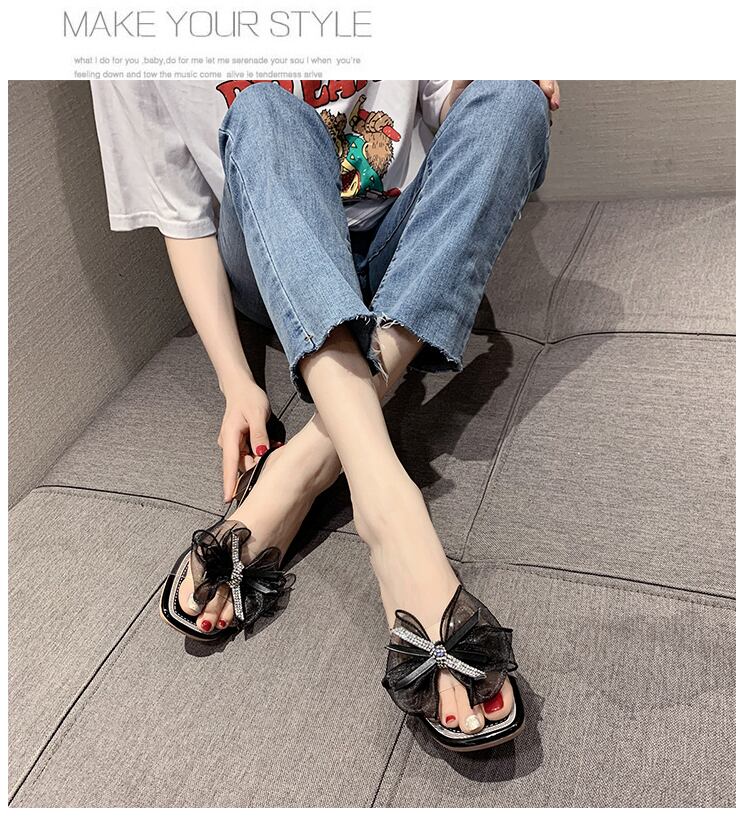 純赤いスリッパの女性は、滑り止めのフランス語の単語のドラッグ潮で厚い2020新しい夏のファッションのちょう結びを着用します 部族の婦人靴1385128