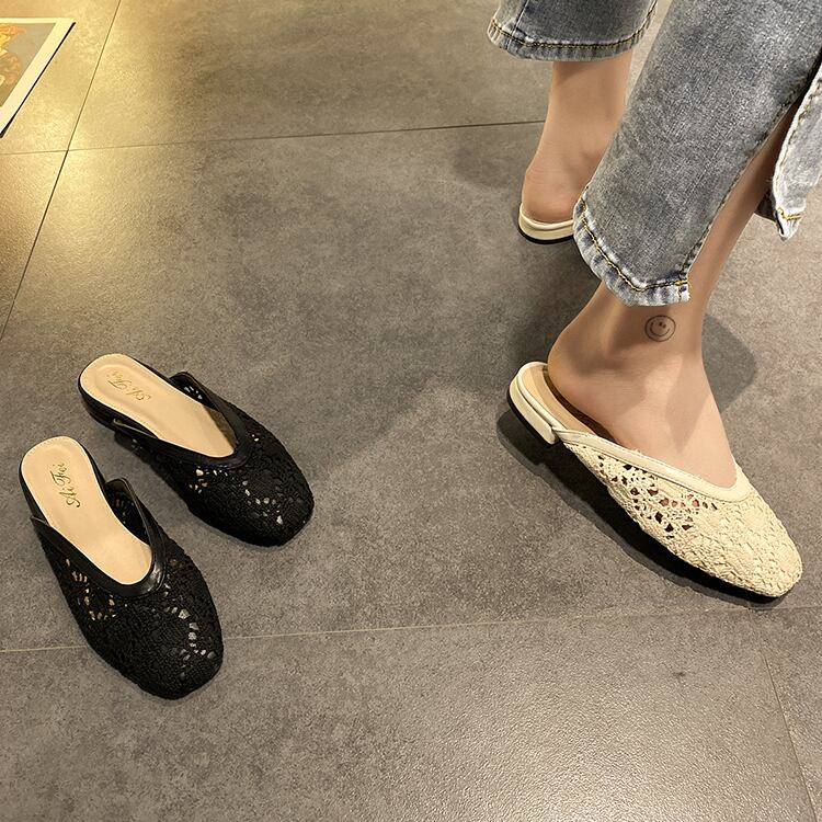 包頭ハーフスリッパ女性の夏の新しい2020年の新しいバージョンの赤い中空の正方形のヘッドの厚いサンダルの潮 部族の婦人靴7743366