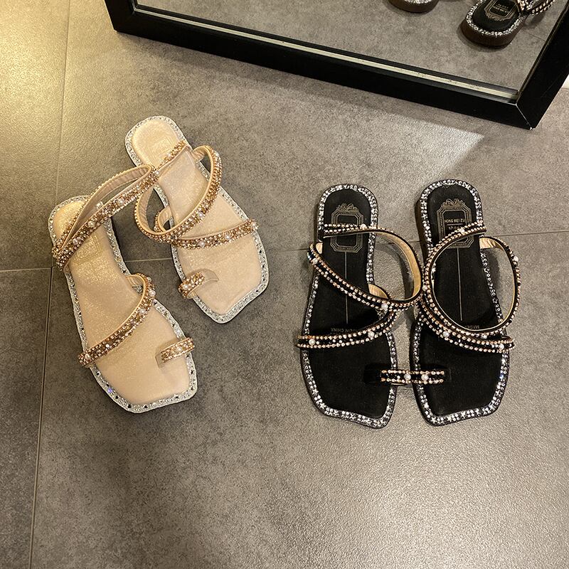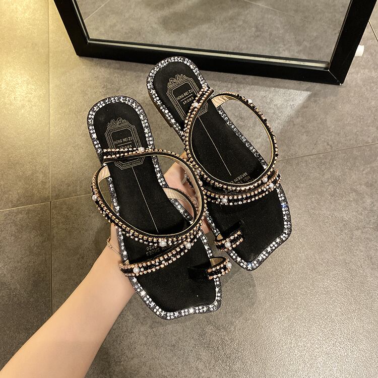 フェアリー風水ダイヤモンドヘリンボーンサンダル女性2020新しい夏のフラットボトム2着用学生のスカートレディースサンダル 部族の婦人靴5226804