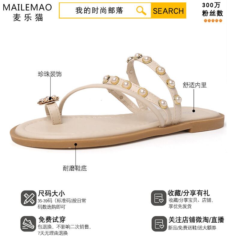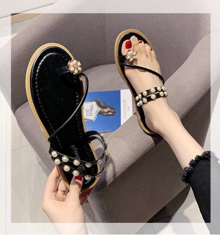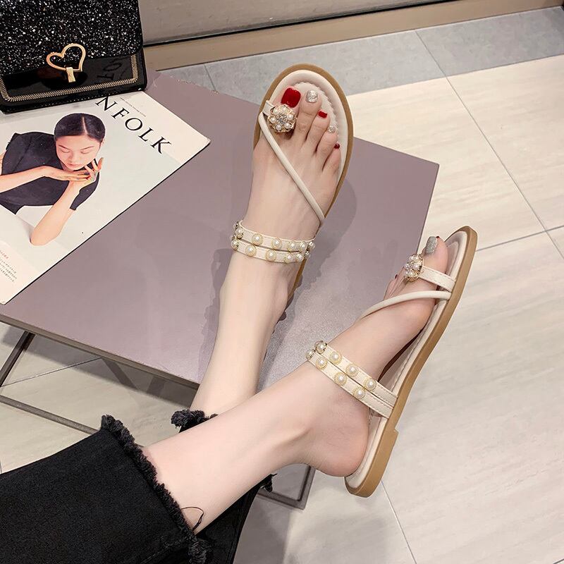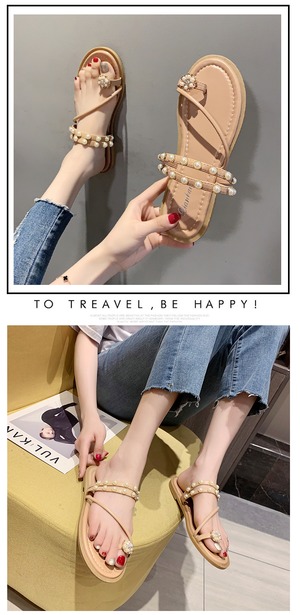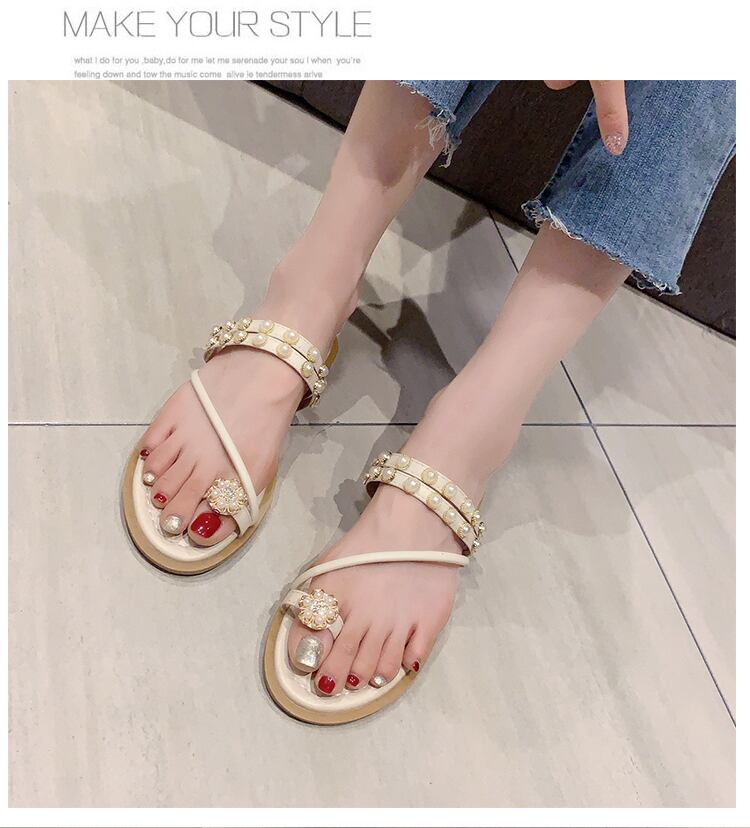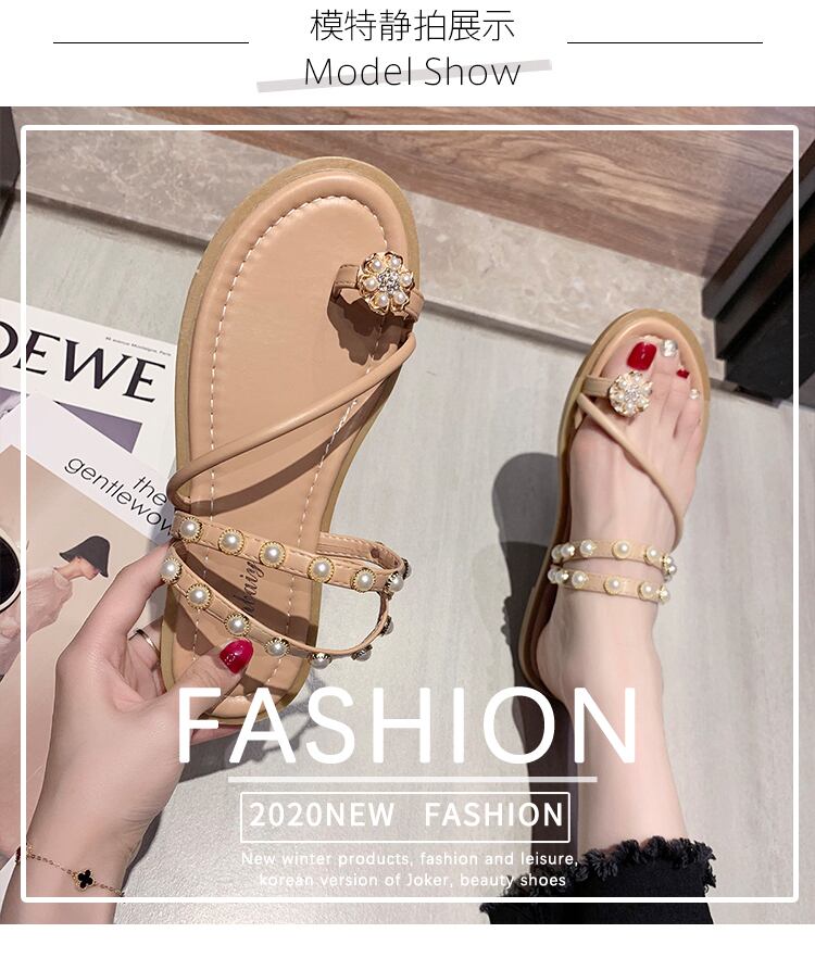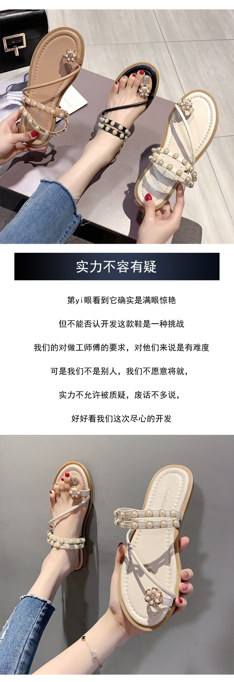 ネットレッドフラットボトムビーチサンダルの女性が2020夏の新しいファッションinsの潮の女性の靴の真珠の野生のビーチサンダルを着用します。 部族の婦人靴7705080