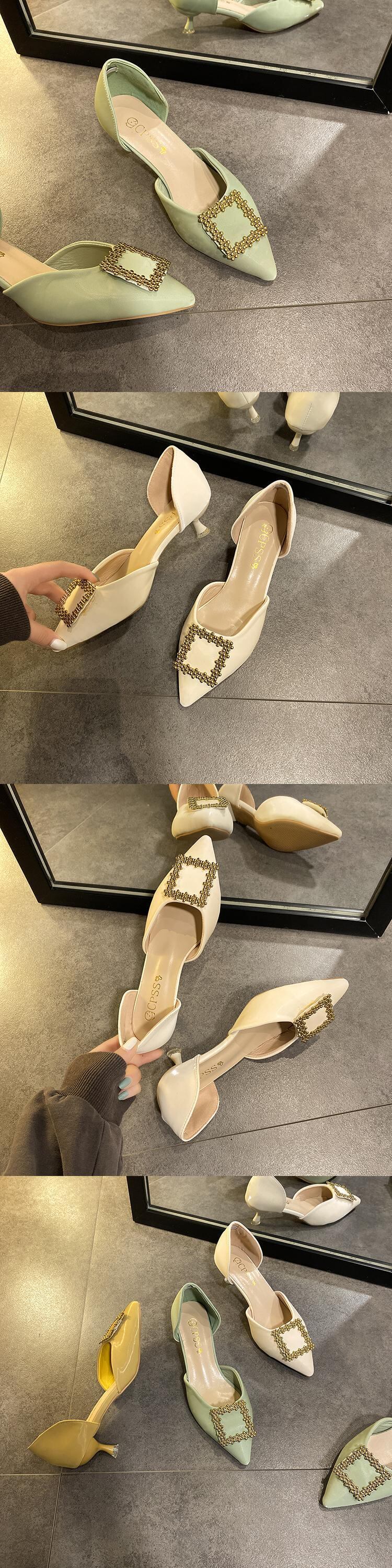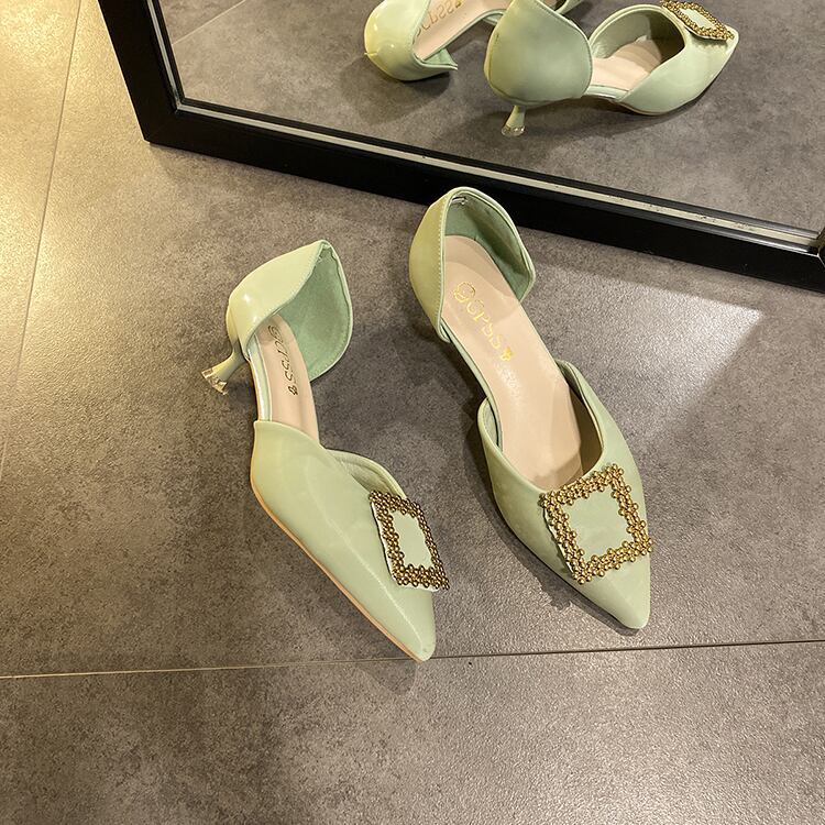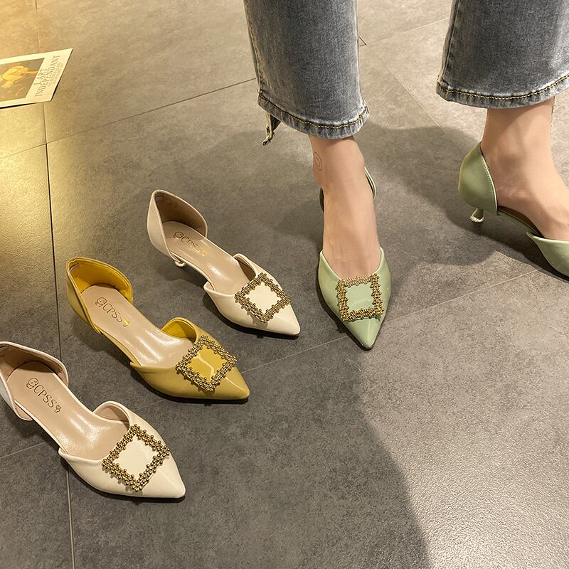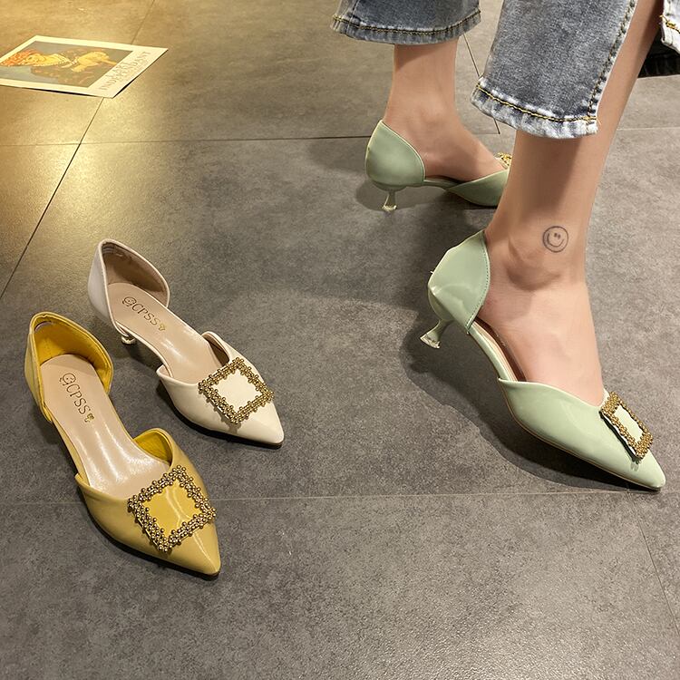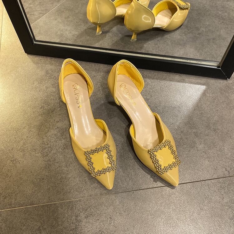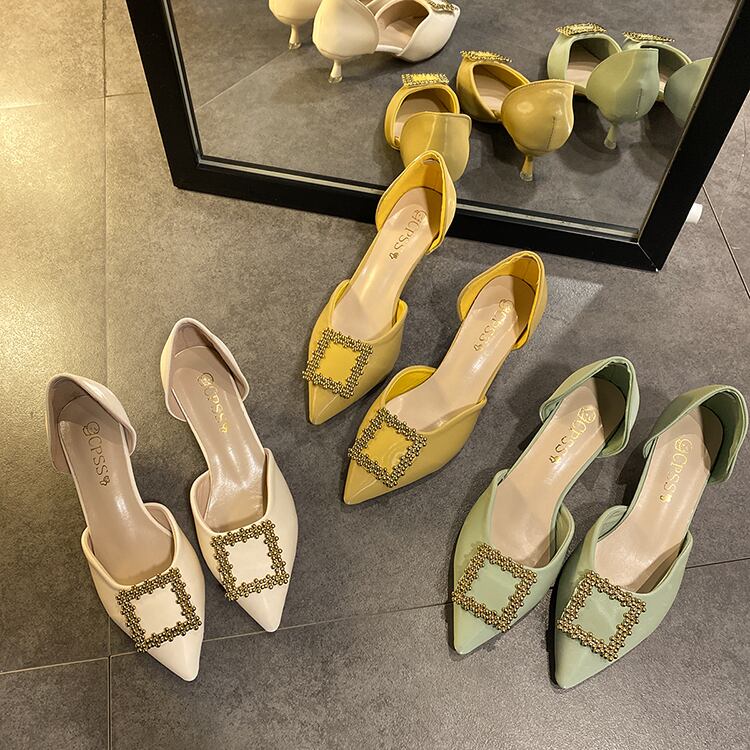 2020年春と夏の新しい女性の靴バージョン浅い口の尖ったラインストーンの妖精のスタイルの単一の靴野生の中空スクープシューズ女性 部族の婦人靴0929079