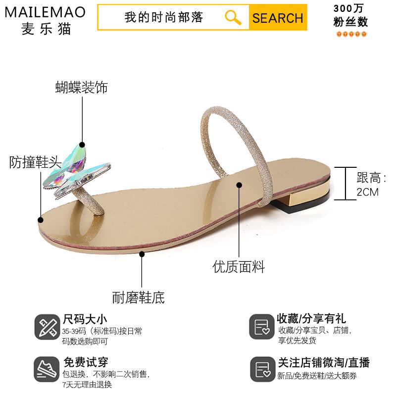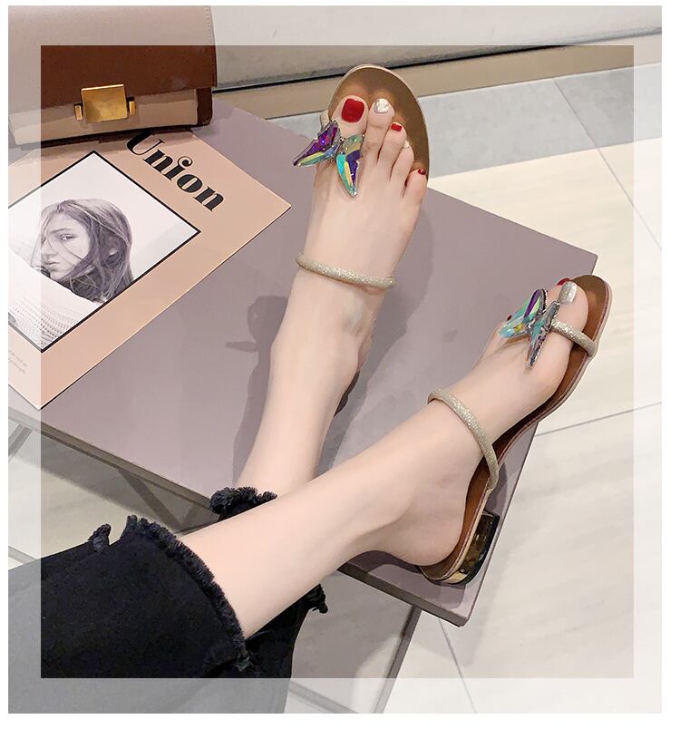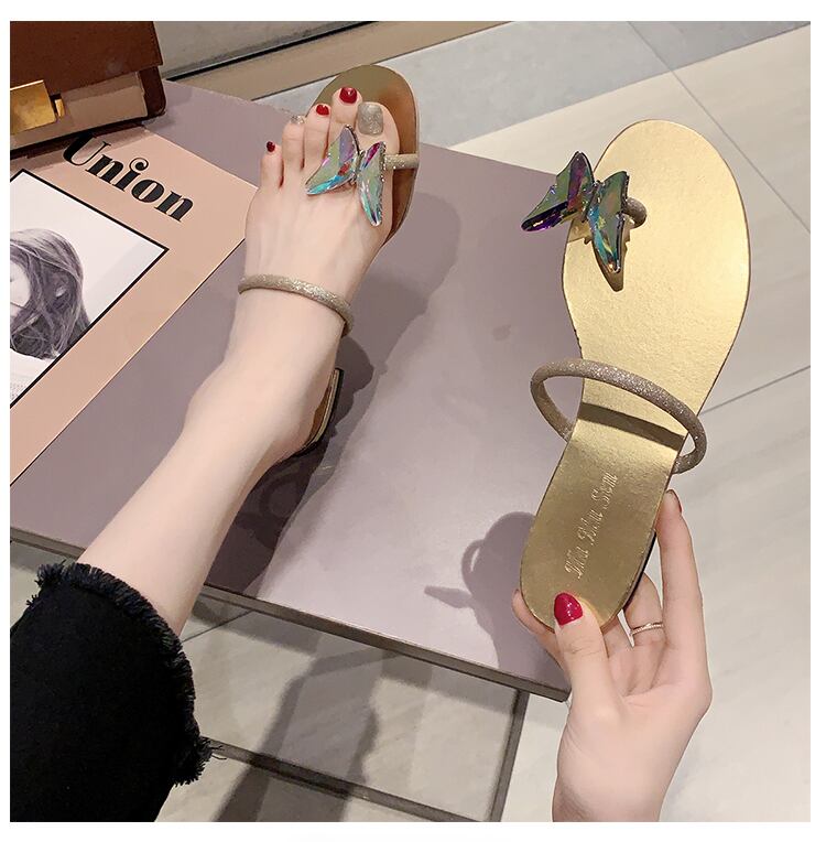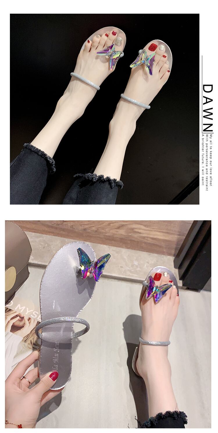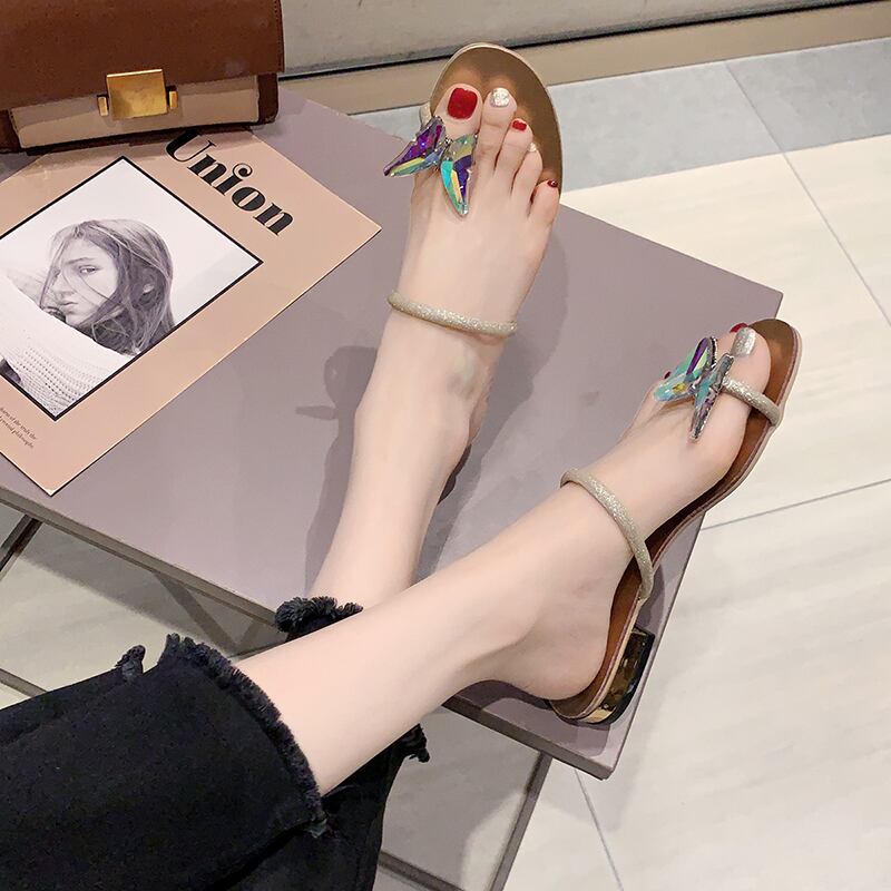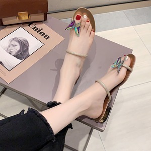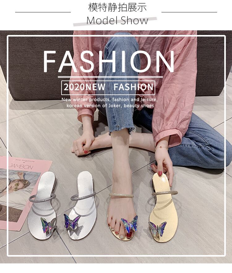 スリッパ女性は2020年夏の新しいファッション野生のネット赤いクリップつま先蝶フラットボトムつま先ワードサンダル女性を着用します 部族の婦人靴7029474
