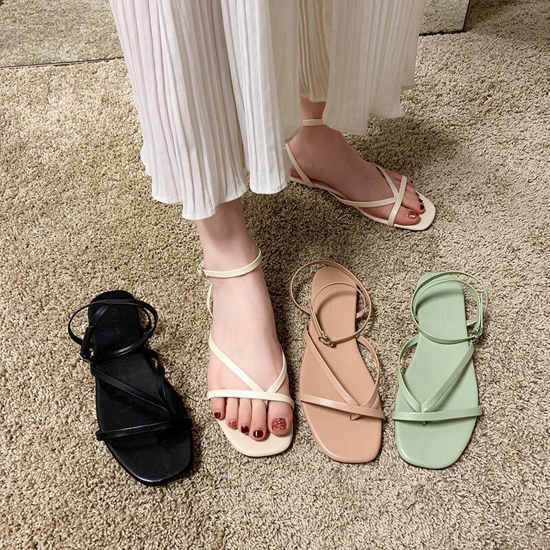 サンダル女性の妖精風クリップつま先2020夏の新しいローマの靴フラットボトムワードバックル学生ファッションフラットハイヒール潮 部族の婦人靴9018477