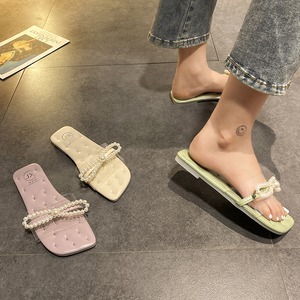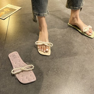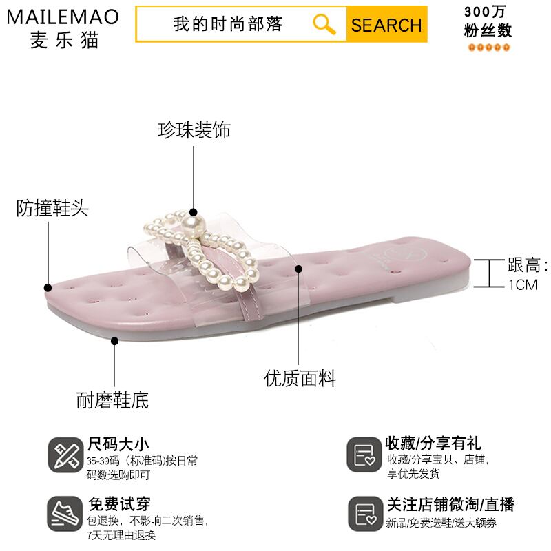 アウタースリッパ女性2020新しい夏の摩耗純赤フラットボトムファッションパールソフトボトムシーサイドサンダル 部族の婦人靴6667583