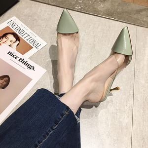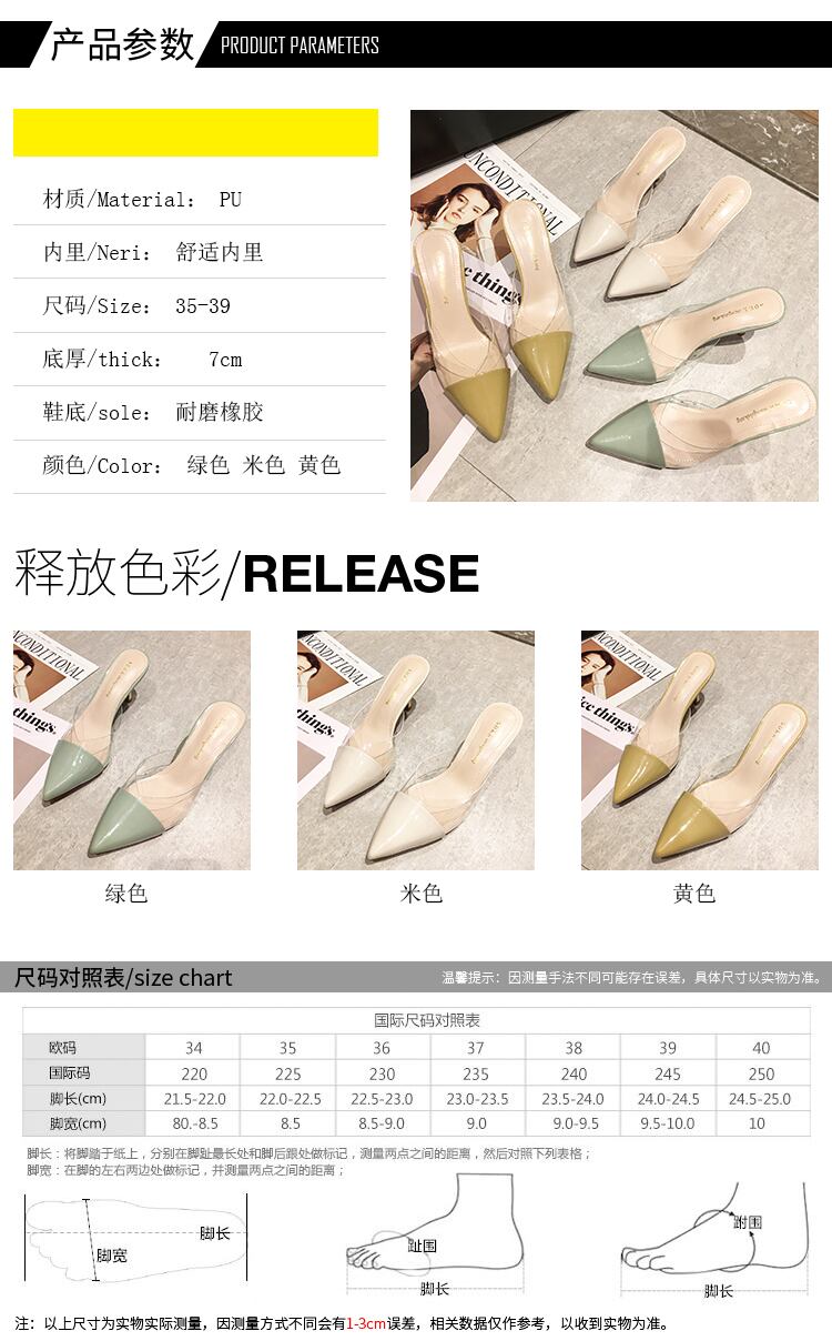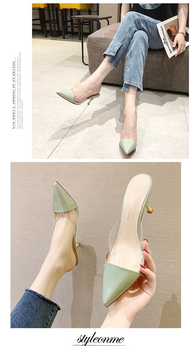 包頭ハーフスリッパ女性は2020年春と夏の新しいファッション尖った細いスティレットハイヒールスリッパ野生のミュラーサンダルを着用します 部族の婦人靴0429524