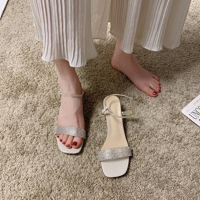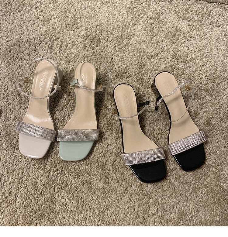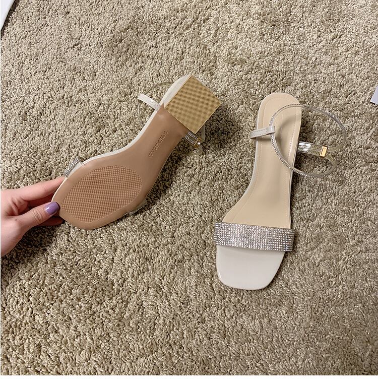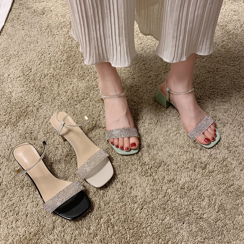 夏のサンダル女性2020新しいファッションワイルドネット赤小さな新鮮なハイヒールラインストーン単語ローマの靴 部族の婦人靴0821932