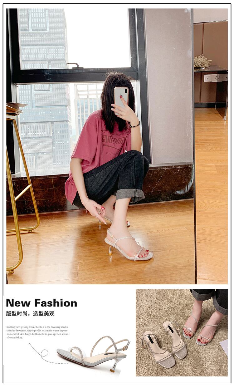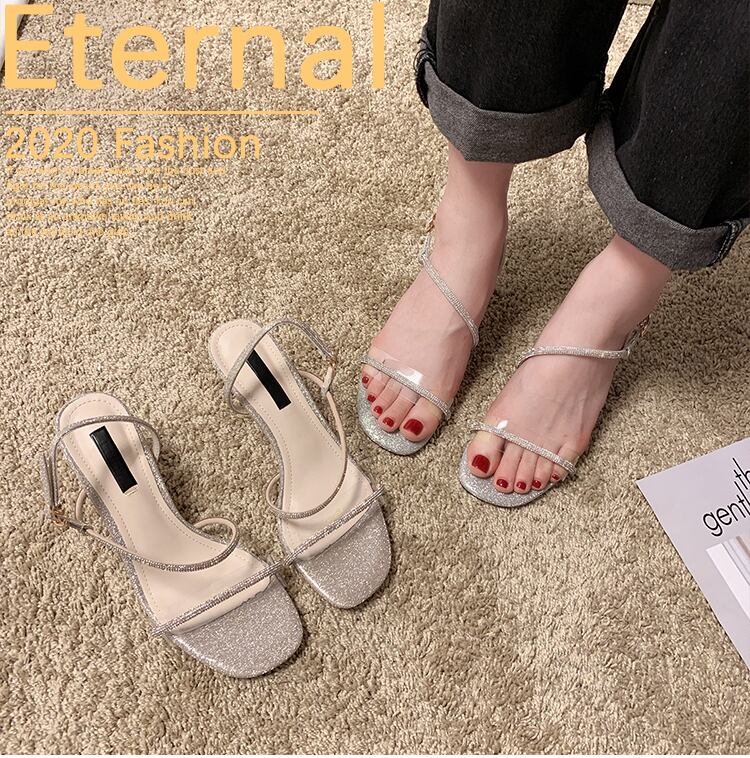 サンダル2020新しい夏のネット赤い妖精スタイルの野生の罰金ラインストーンローマのハイヒールの潮 部族の婦人靴6496774