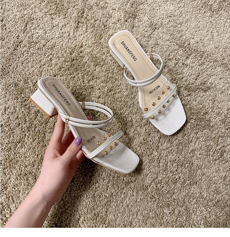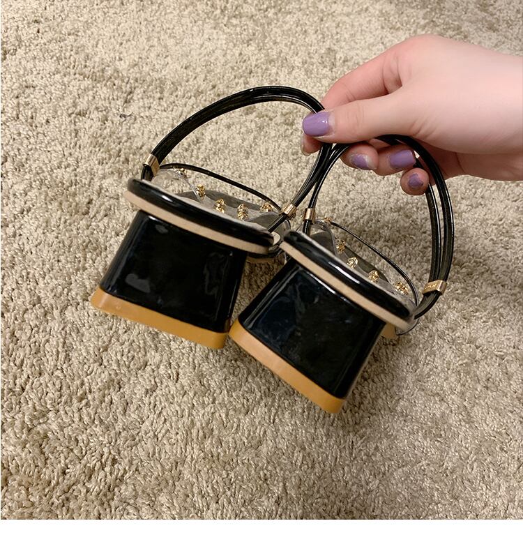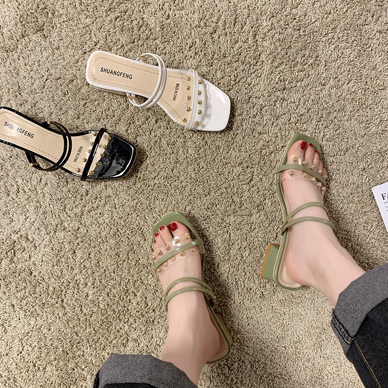 厚いヒールサンダル女性2020新しい夏スタイルアウターファッションレディーススクエアヘッドギアフィート2着用妖精スタイルサンダル 部族の婦人靴9324358