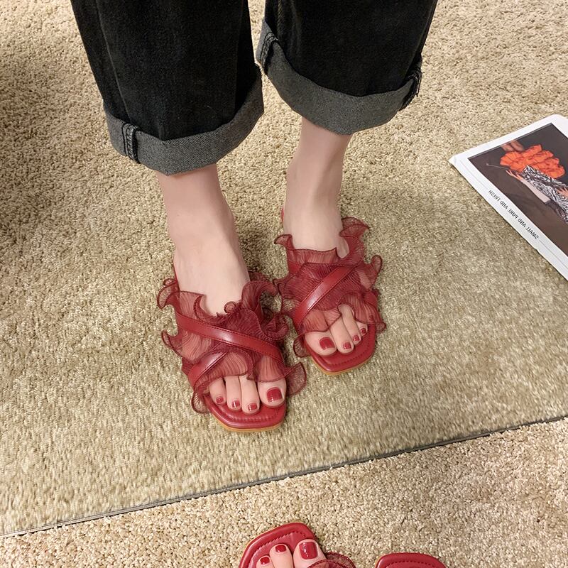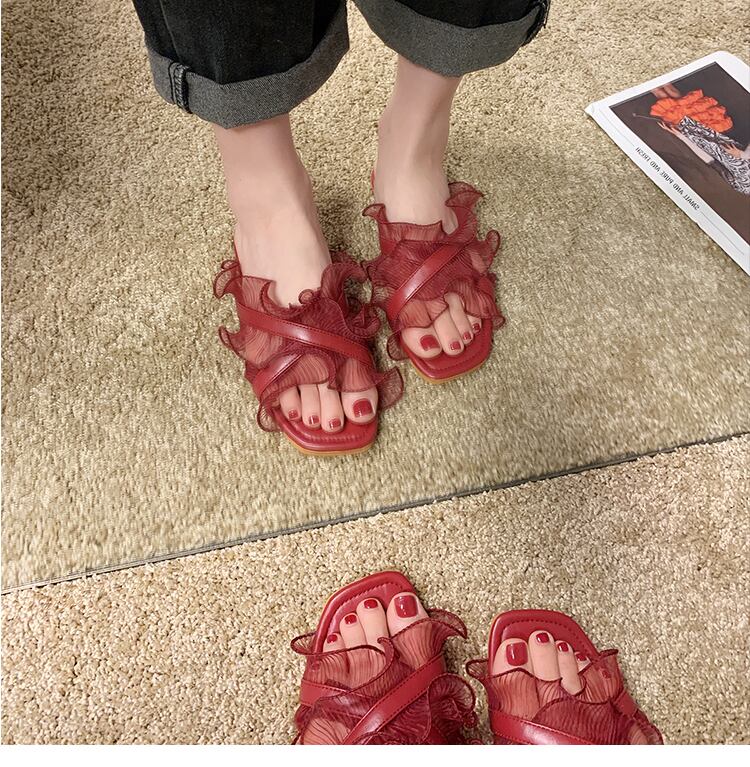 夏のメッシュのサンダルの女性のインスタイド2020新しいバージョンの夏のメッシュオープントゥワイルドフラットフラットバックルローマンシューズ 部族の婦人靴3480450