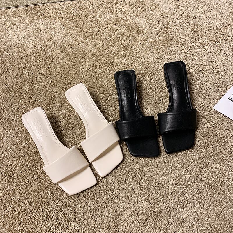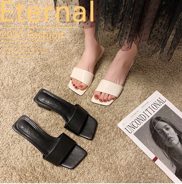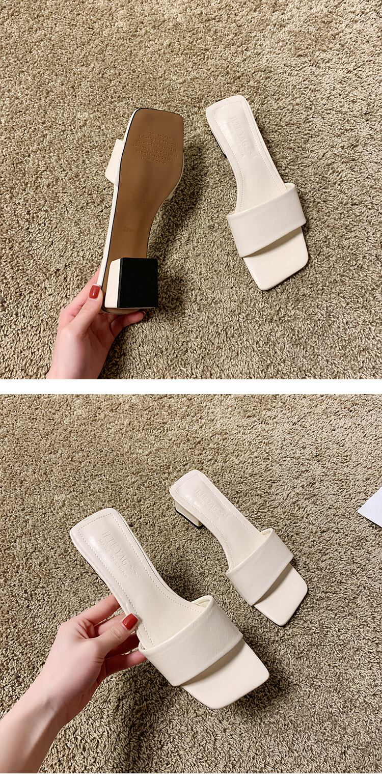 純赤いサンダルとスリッパの女性は、オープントゥのスリッパの女性の潮で厚く2020年夏の新しいファッションの正方形のヘッドを着用します 部族の婦人靴8812948