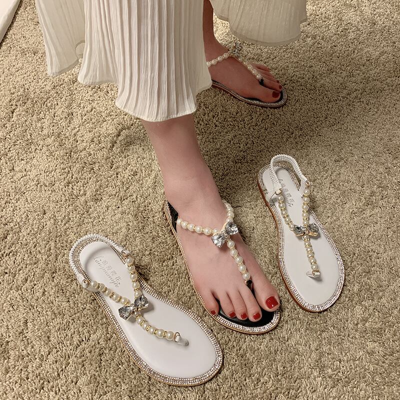 サンダル女性の妖精スタイルの靴の女性2020新しい夏のネット赤い野生の真珠のフラットシューズ休暇のビーチシューズの潮 部族の婦人靴2564265