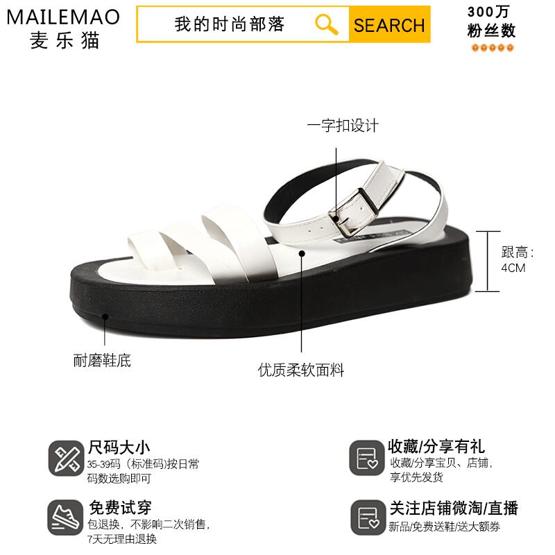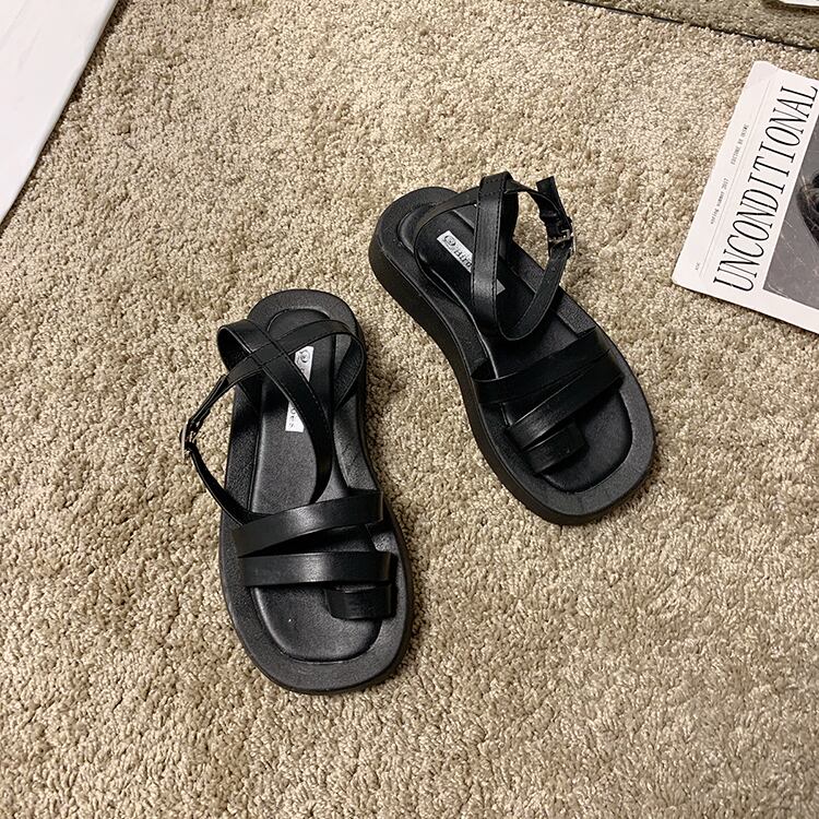 フラットサンダル女性2020新しい夏のファッション単語バックルクリップつま先妖精スタイル学生厚い底野生のローマの靴 部族の婦人靴1277301