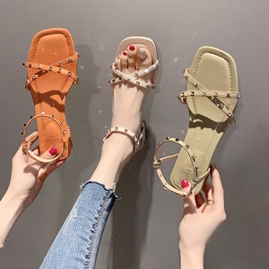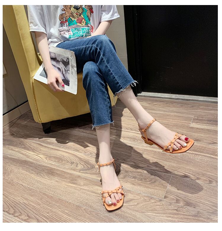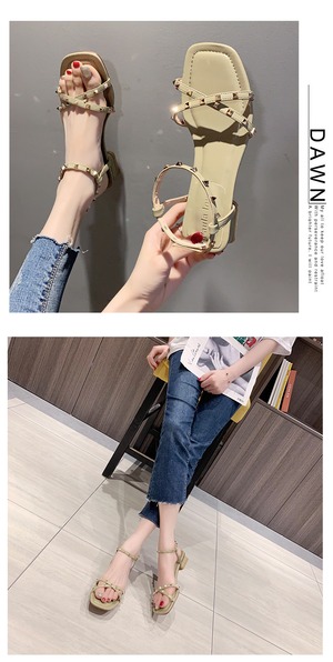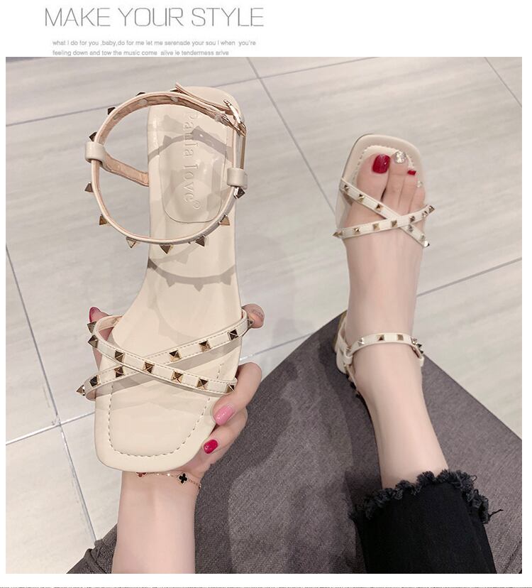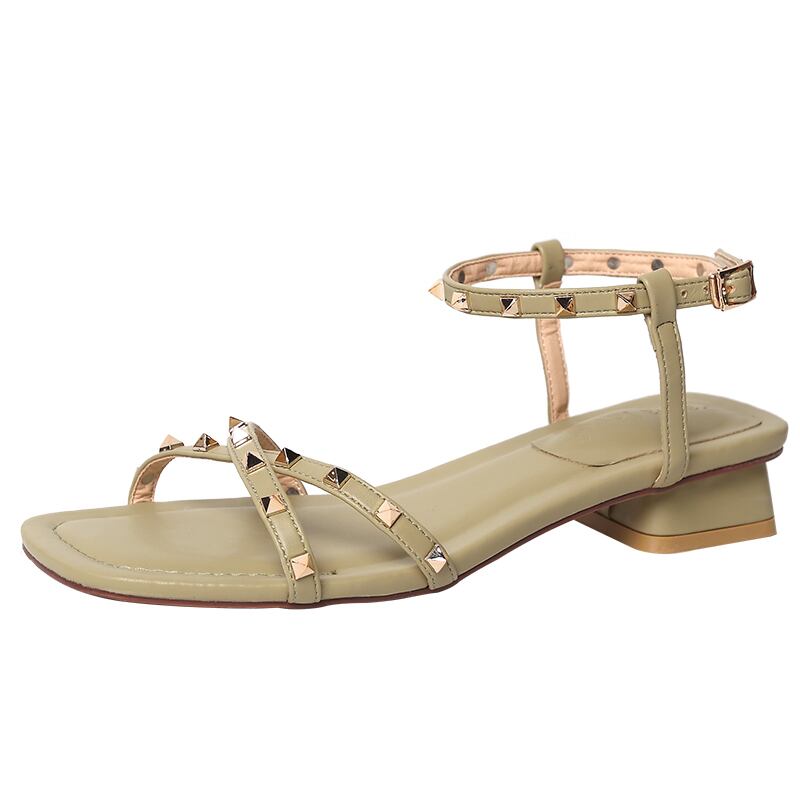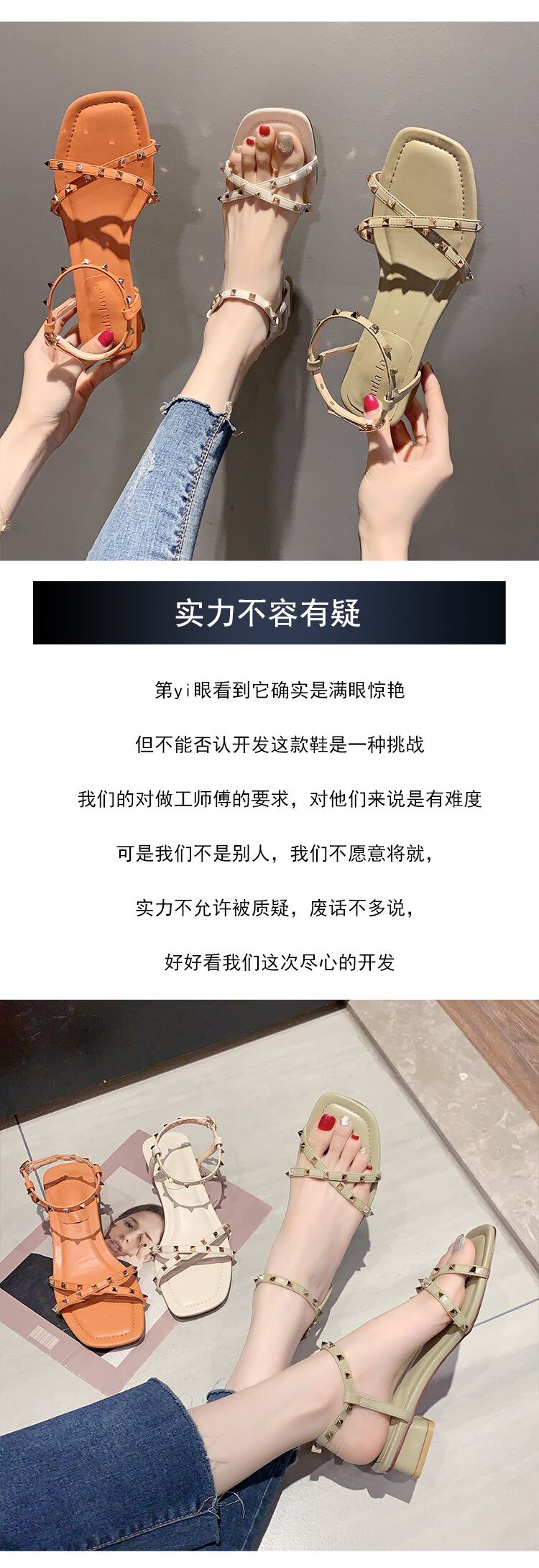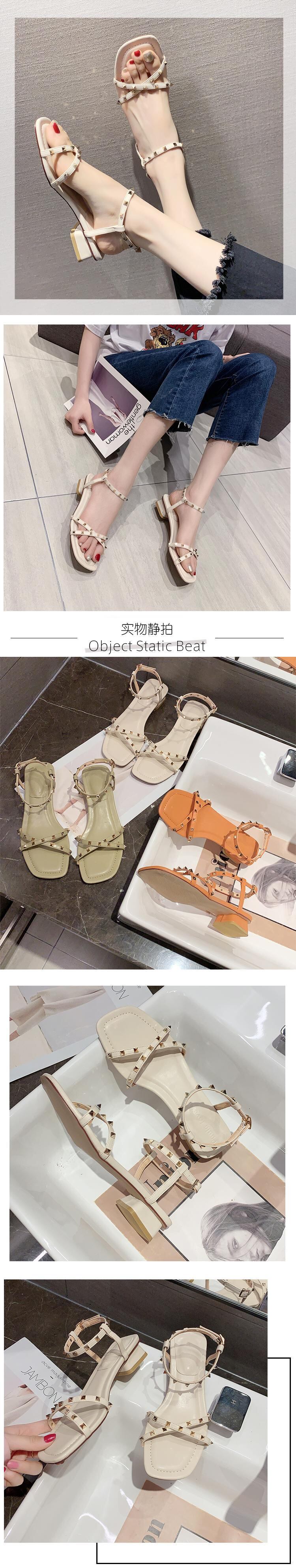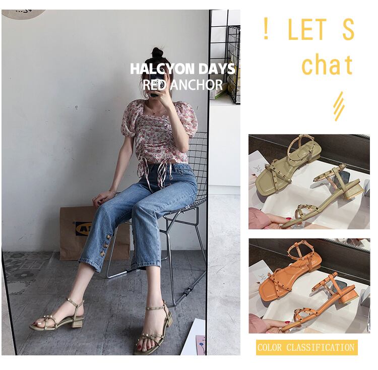 2020新しい夏のミッドヒール厚いヒールサンダル女性ネット赤妖精スタイルスカートファッション1単語ハイヒール 部族の婦人靴6931878