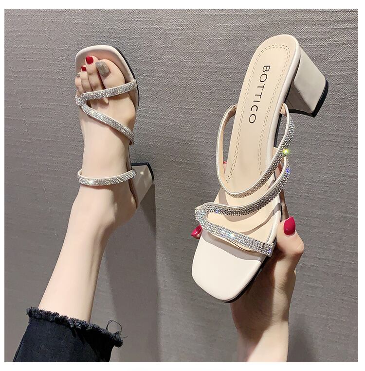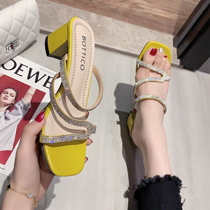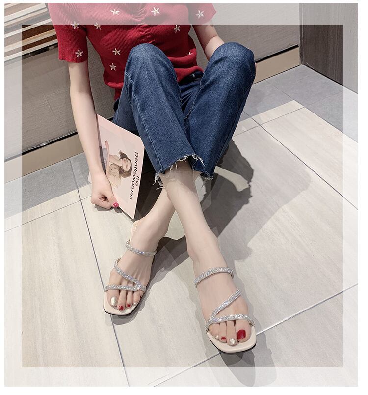 純赤いサンダルとスリッパ女性のアウター2020年夏の新しいファッションラインストーンオープンつま先の厚いヒールスリッパ女性のトレンド 部族の婦人靴5172036