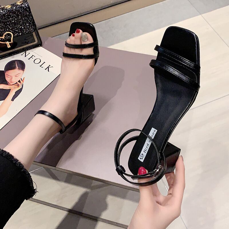 サンダル2020  Ins Tideチャンキーヒールオープントゥローマンシューズバージョンワイルドフェアリースタイルフレンチレディースハイヒール 部族の婦人靴7295817