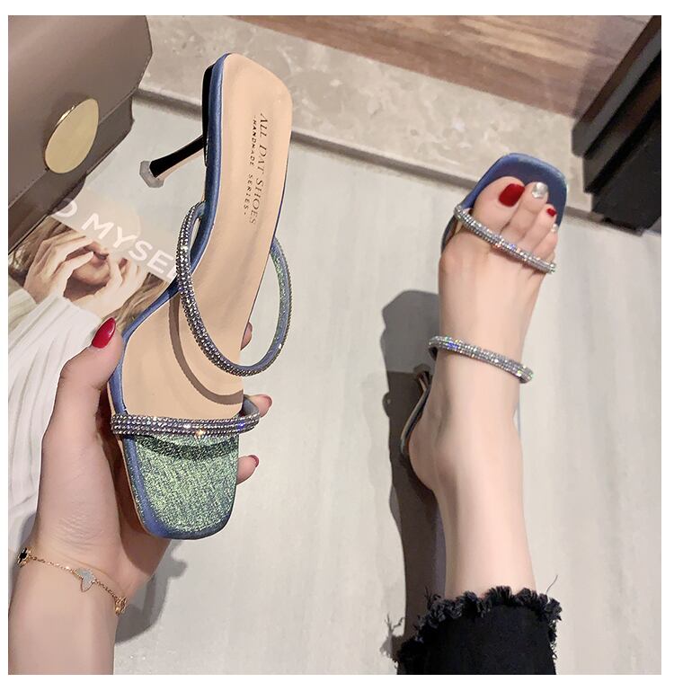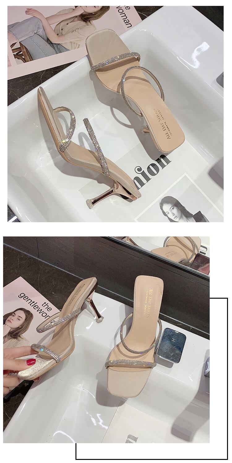 スリッパ女性の夏の摩耗2020新しいネット赤イン潮潮つま先ラインストーン妖精スタイルカジュアルワードハイヒールサンダル 部族の婦人靴0845858