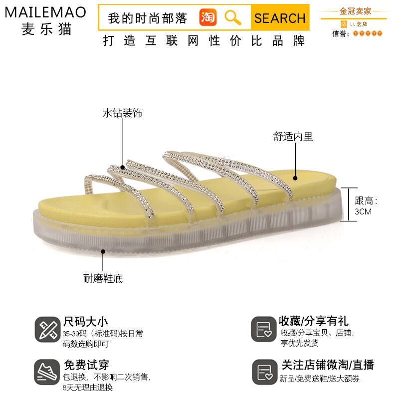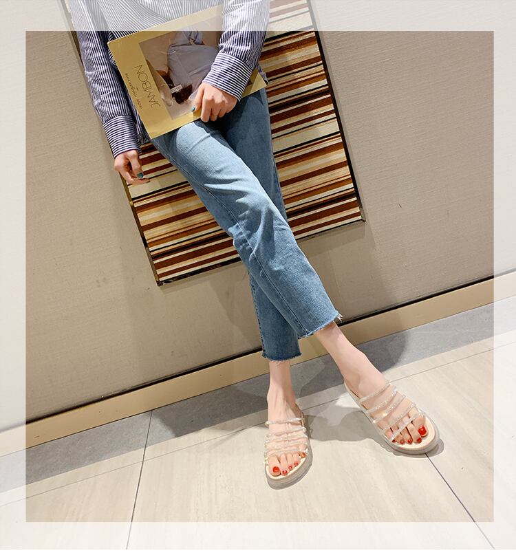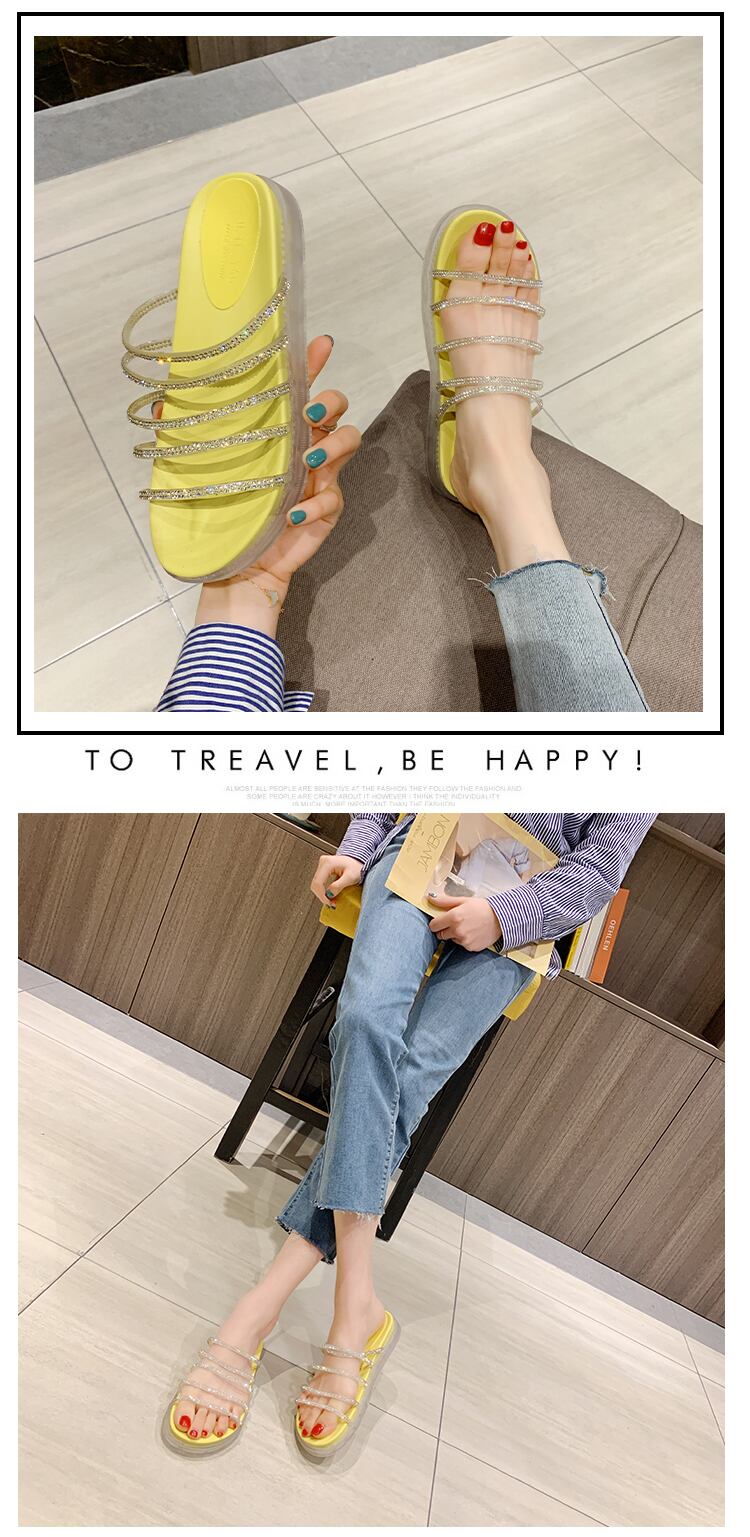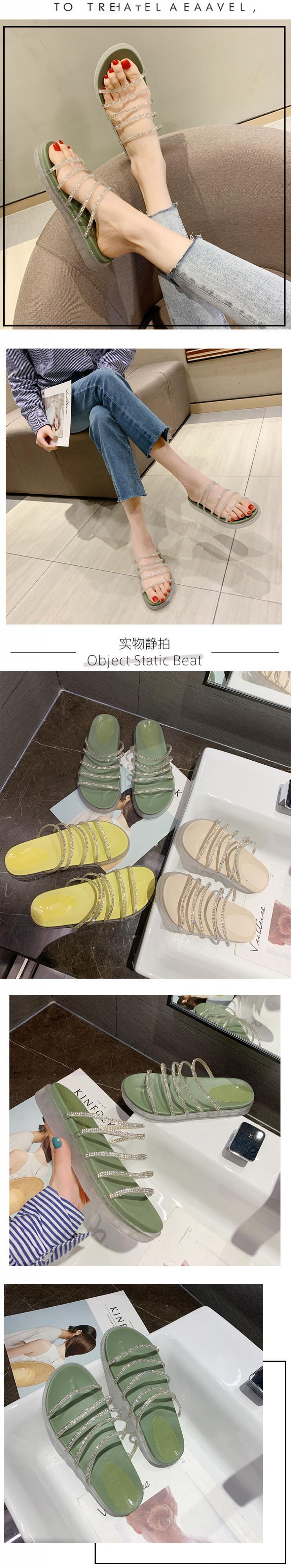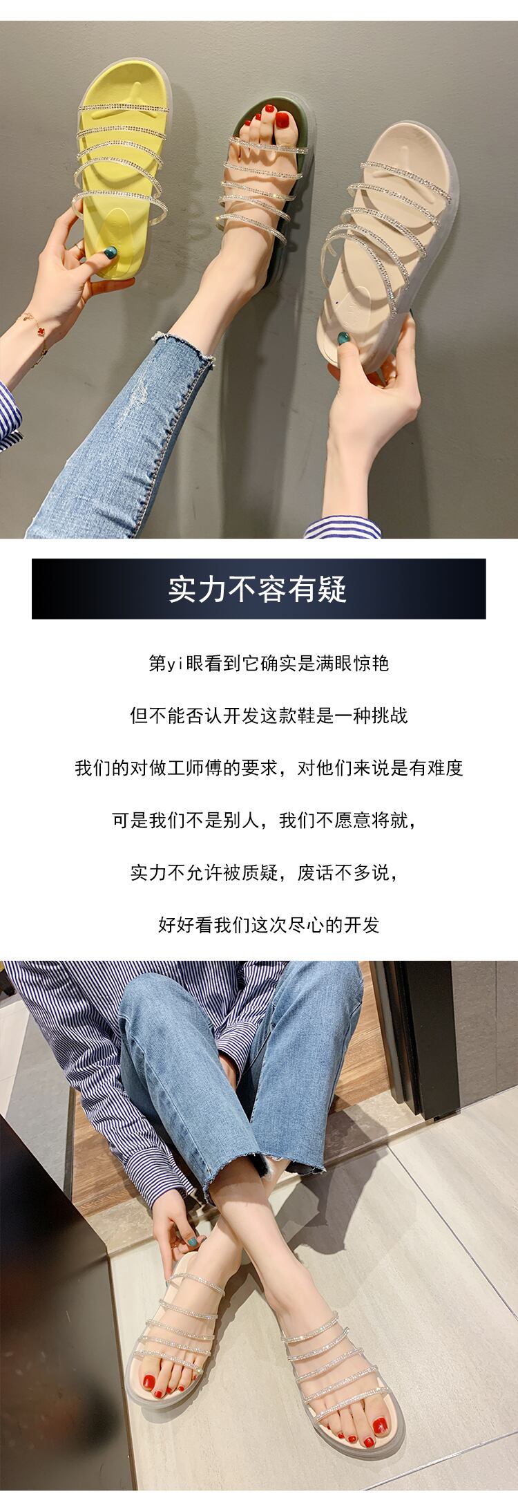 スリッパ女性insタイドウェア2020新しい夏の野生の厚い底ラインストーンファッションフラットボトムビーチネット赤いサンダル 部族の婦人靴5362790