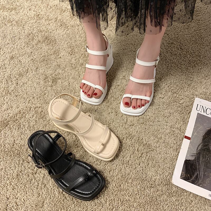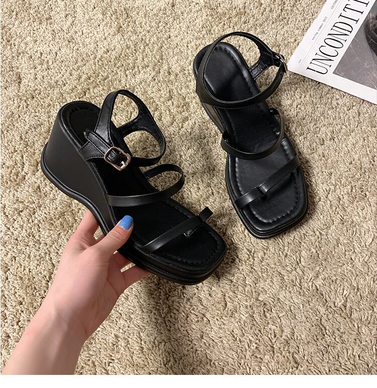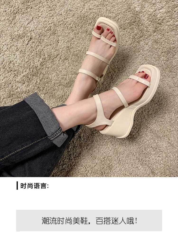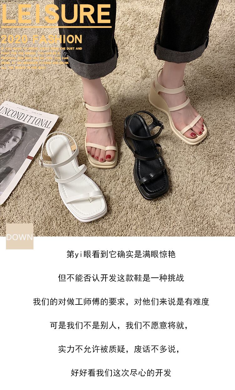 サンダル女性ins2020夏の新しいファッションワイルドネットレッドウェッジオープントゥバックルハイヒール 部族の婦人靴7965460