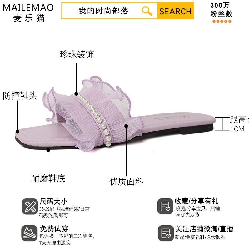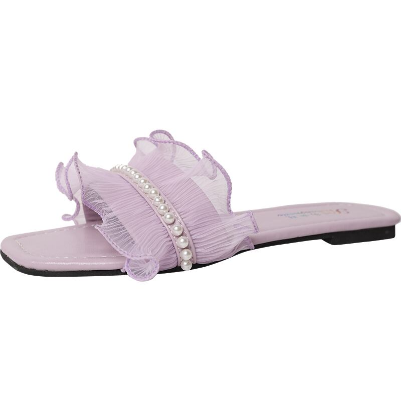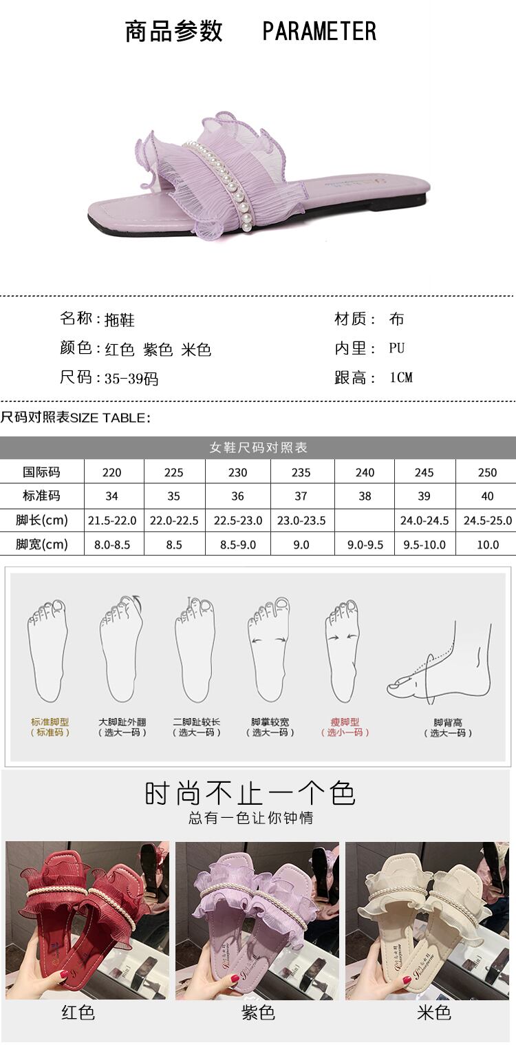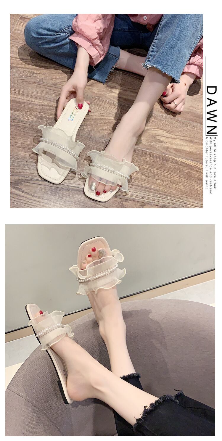 サンダルとスリッパレディースアウターウェア2020夏の新入生オールマッチパールネットヤーンフラットノンスリップビーチサンダル 部族の婦人靴6945225