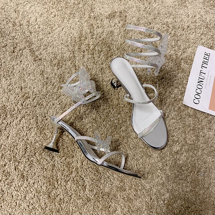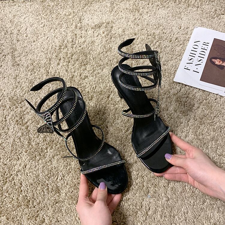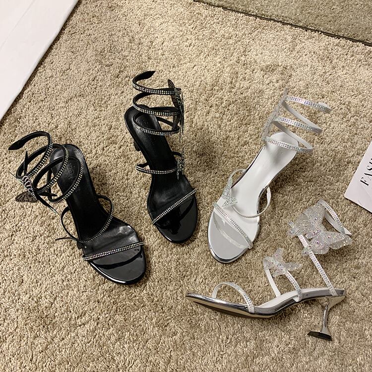 女性のファッションサンダルの妖精スタイル2020夏の新しいバージョンの野生のネット赤いラインストーンファインヒールボウヒール 部族の婦人靴9111726