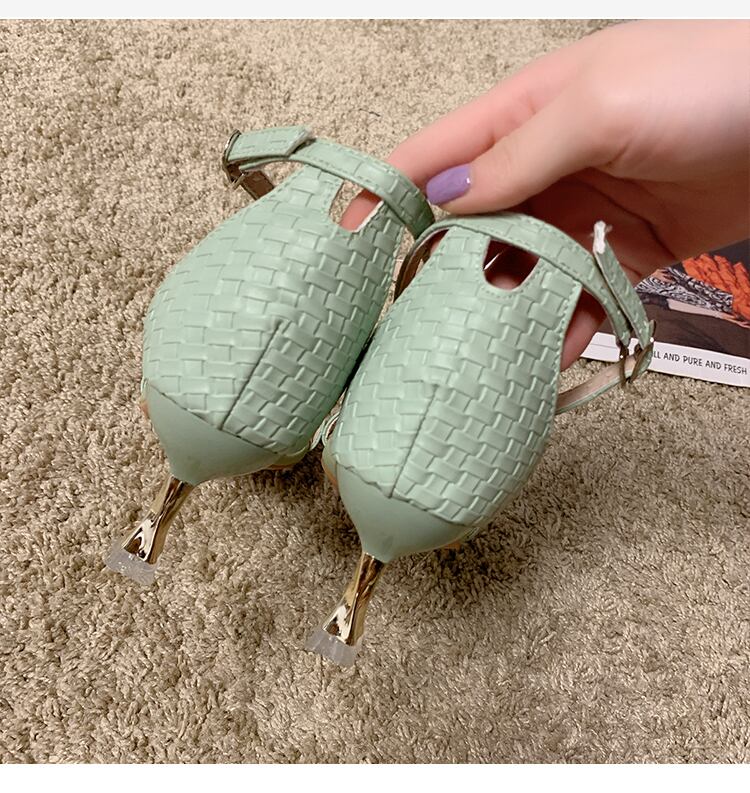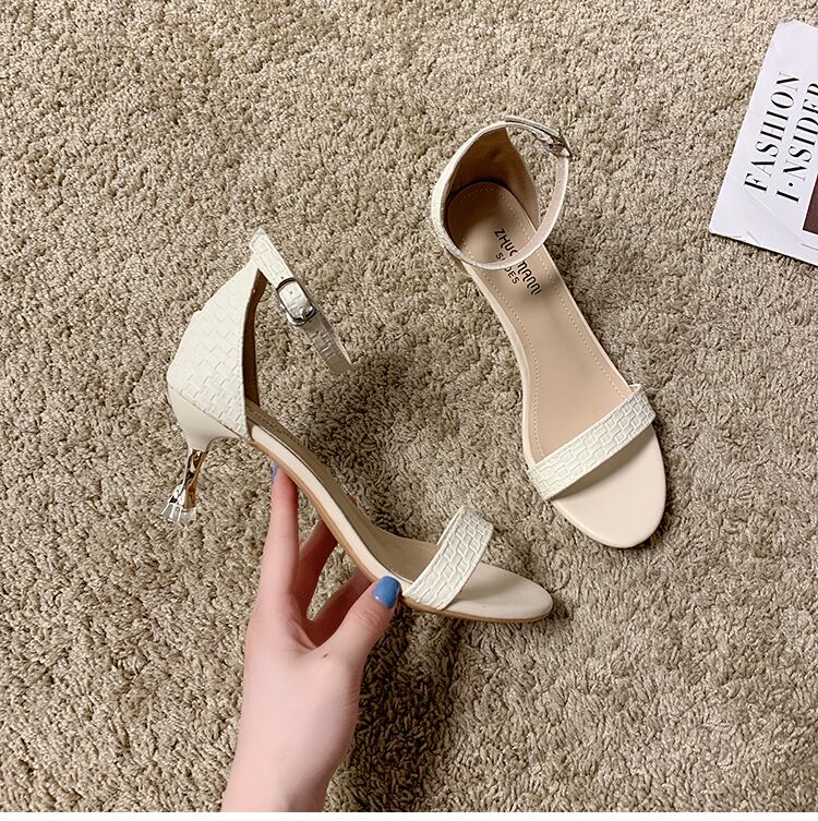 2020新しい夏の女性のワイルドネットレッドフレンチハイヒールスティレットバックルローマンサンダルの女性 部族の婦人靴4401483