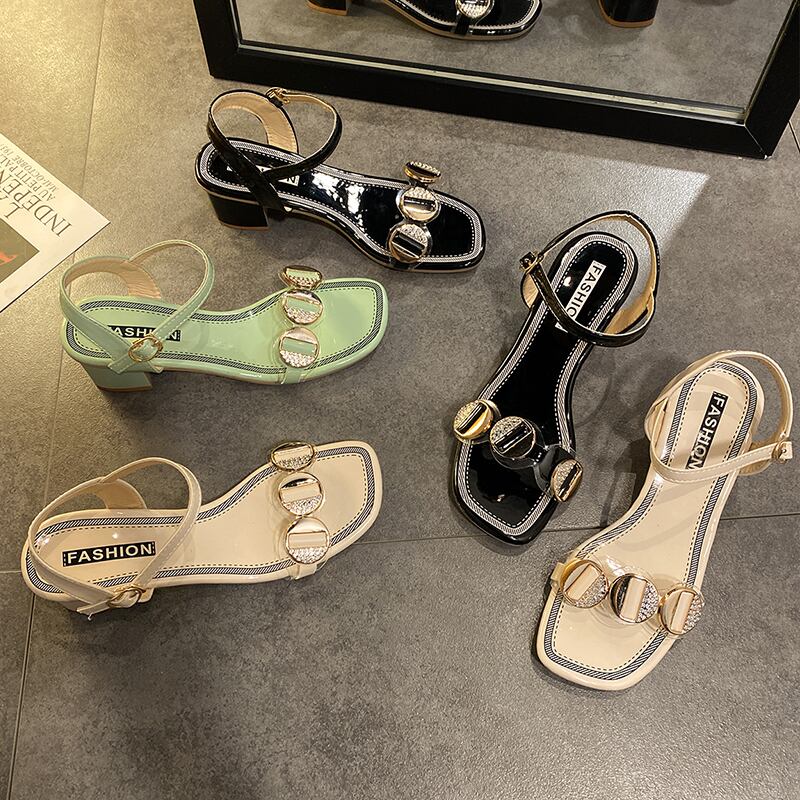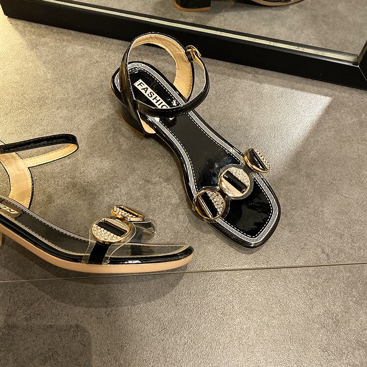 厚いヒールの妖精の風のハイヒールのサンダル女性ins潮2020新しい夏の野生の正方形の頭を持つ一言 部族の婦人靴6363182