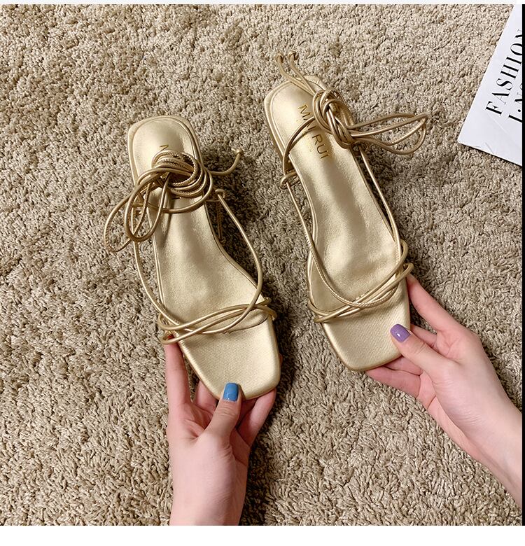 野生のファッションストラップネット赤の妖精スタイル厚かかとのローマの靴のサンダル女性insタイド2020夏の新バージョン 部族の婦人靴3941531
